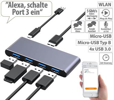 (lifepr) (Buggingen, 22.02.2021) „Alexa, schalte die USB-Leuchte ein“: Mit dem WLAN-USB-3.0-Hub von Xystec steuert man die USB-Ports per App, Sprache oder Timer. Die superschnelle Datenübertragung mit bis zu 5 Gbit/s lässt keine Wünsche offen!