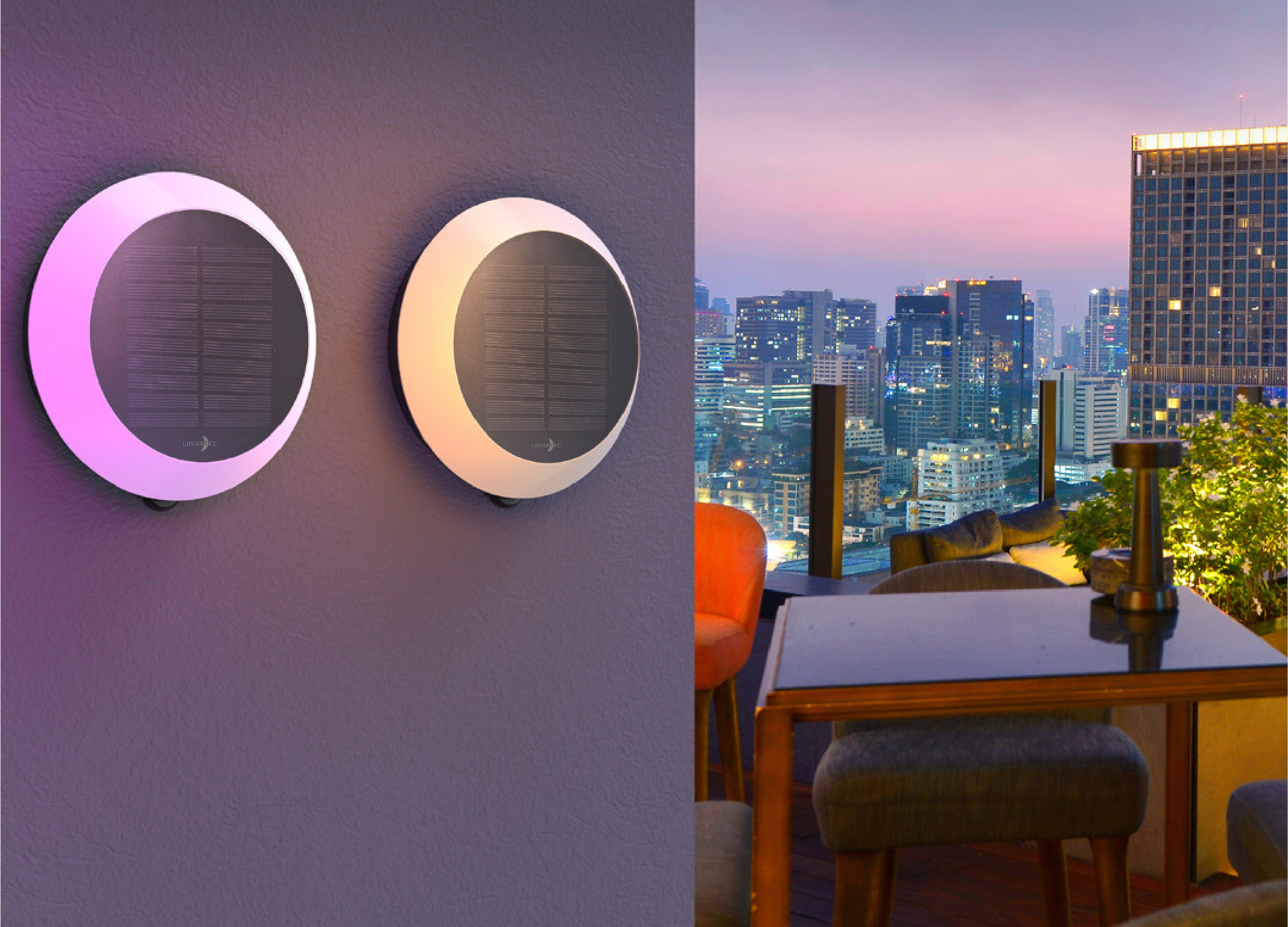 (lifepr) (Buggingen, 11.11.2021) Die Solar-Outdoor-Leuchte „Regenbogen“ von Lunartec lässt die Hauswand, den Weg oder Garten in buntem Licht erstrahlen. Optional auch mit Gateway zum Einbinden von kompatiblen Bluetooth-Geräten in das WLAN.