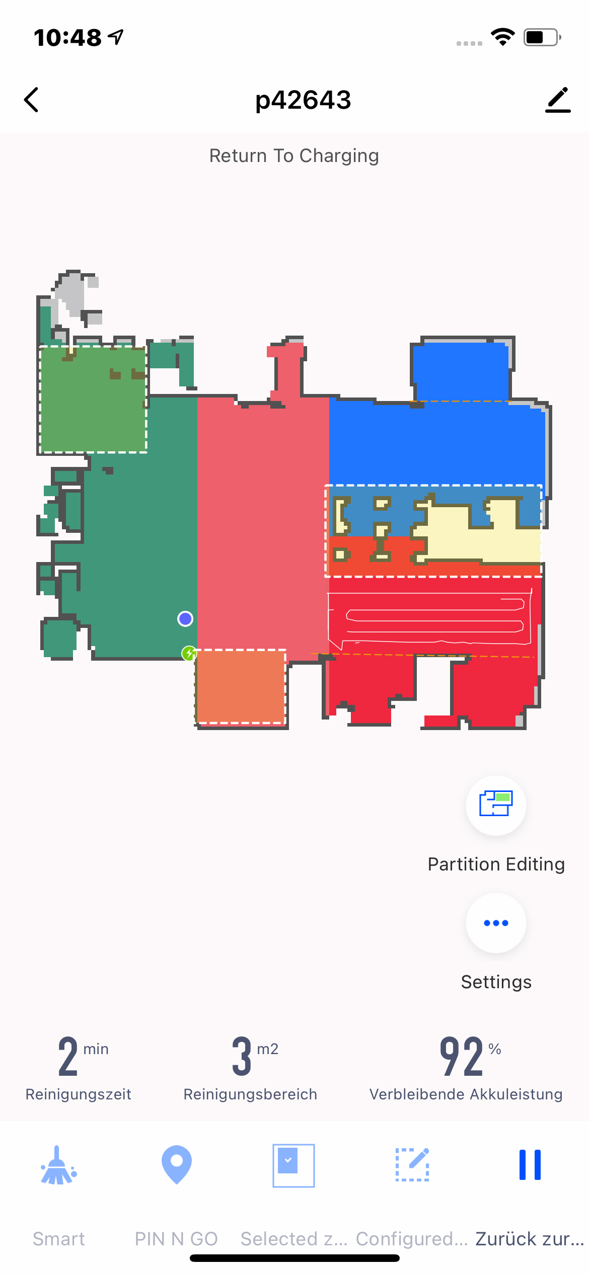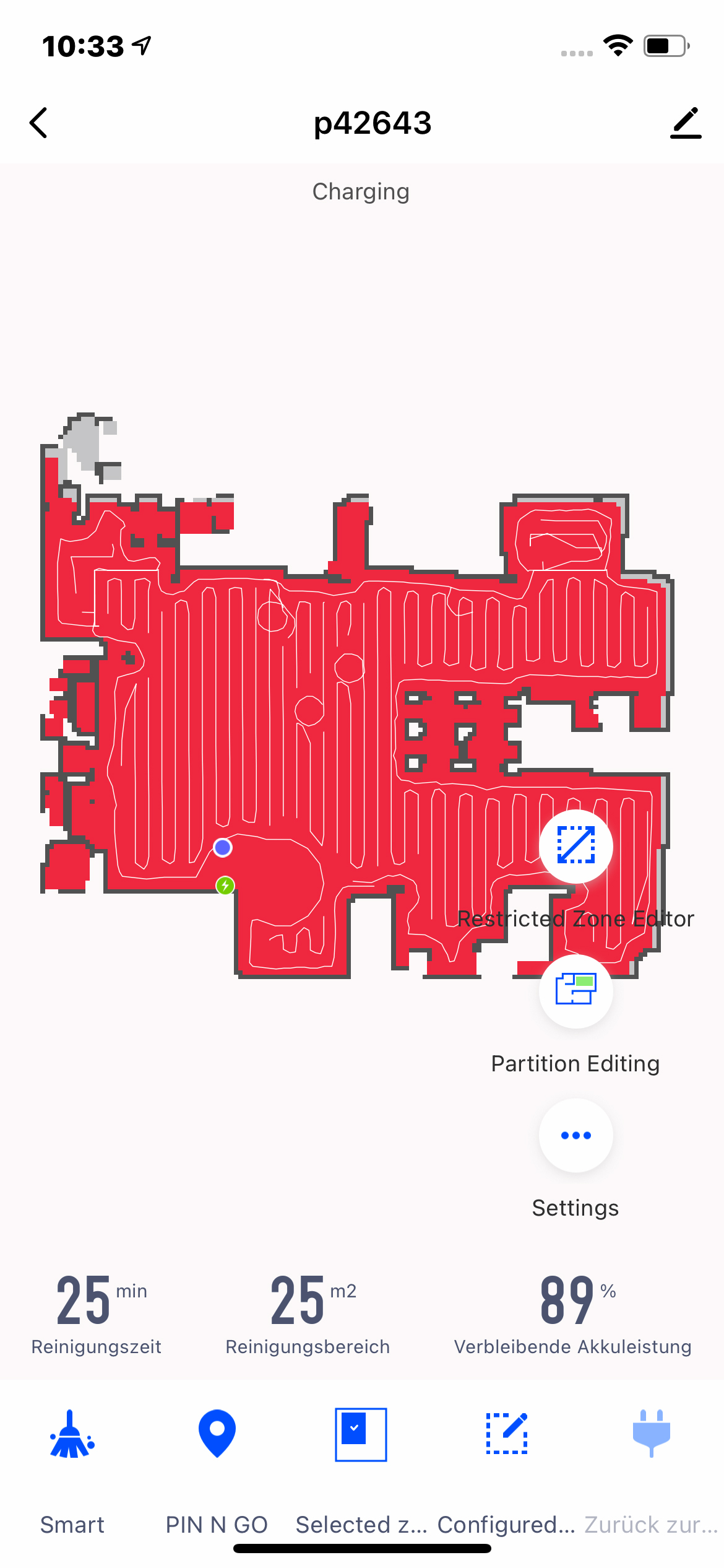 Reinigt nur dort, wo man es möchte: Dank virtuell festlegbaren Reinigungsbereichen und "No-Go-Areas" putzt der Helfer nur dort, wo er es auch soll und lässt gesperrte Bereiche aus.