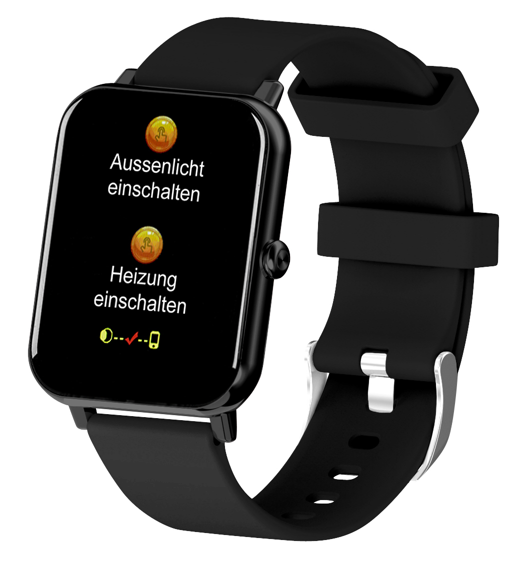 (lifepr) (Buggingen, 05.01.2022) Mit dieser Smartwatch PW-500.app von newgen medicals hat man nicht nur seine Körper- und Fitnessdaten im Blick, sondern kann auch noch 6 Szenen im Smarthome bequem vom Handgelenk steuern!