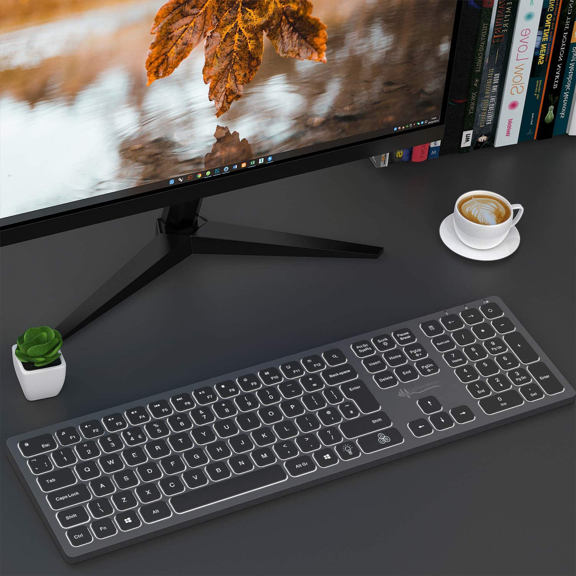 Echter Blickfang für den Schreibtisch: Die schlanke Funk-Tastatur von GeneralKeys liegt elegant auf jeder Unterlage - dank 4 Gummi-Noppen rutschsicher! Ein wahrer Hingucker fürs Büro oder das Zuhause.