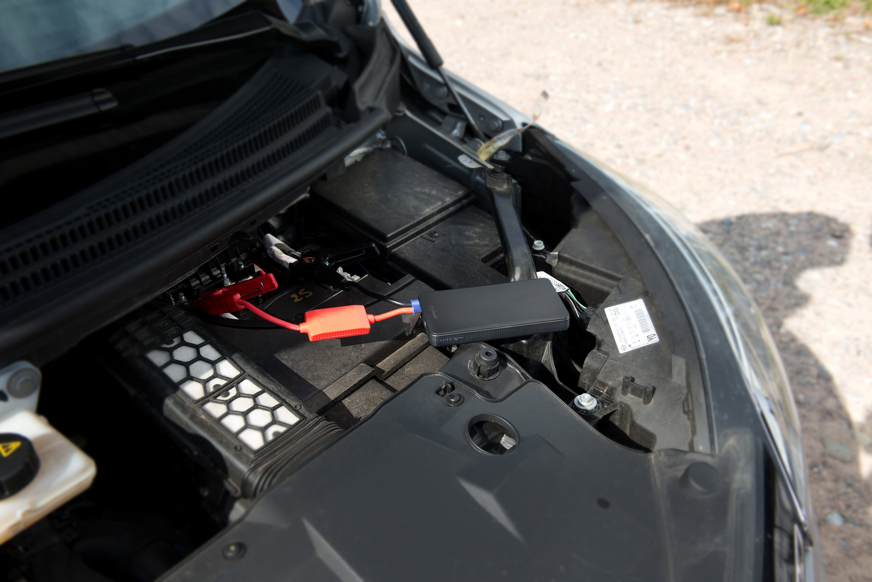 Schnelle Hilfe bei leerer Auto-Batterie: Mit dem leistungsstarken Lithium-Ionen-Akku der Powerbank gibt man Benzin-Motoren mit bis zu 2,5 l Hubraum ganz einfach Starthilfe!