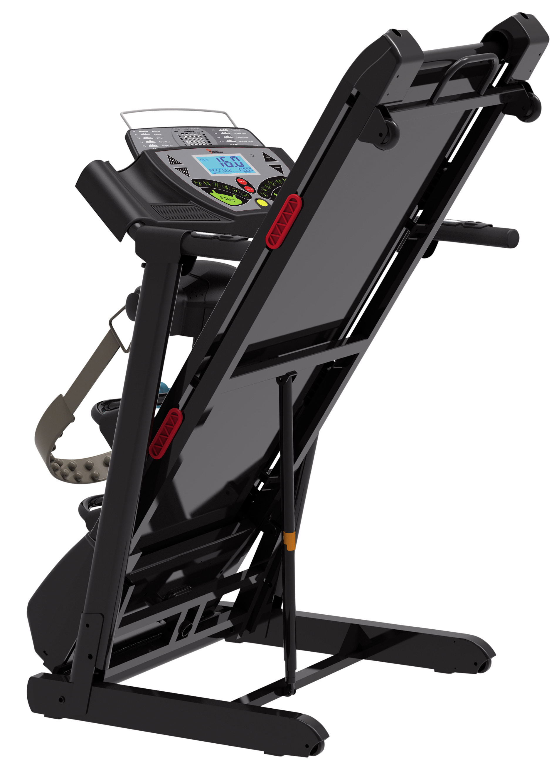 Im Handumdrehen platzsparend verstaut: Dank hydraulischer Hebemechanik lässt sich der Personal-Trainer nach dem Laufen mühelos zusammenfalten! Mit den zwei Rollen an der Unterseite ist das Laufband auch schnell verstaut, z.B. unter dem Bett.