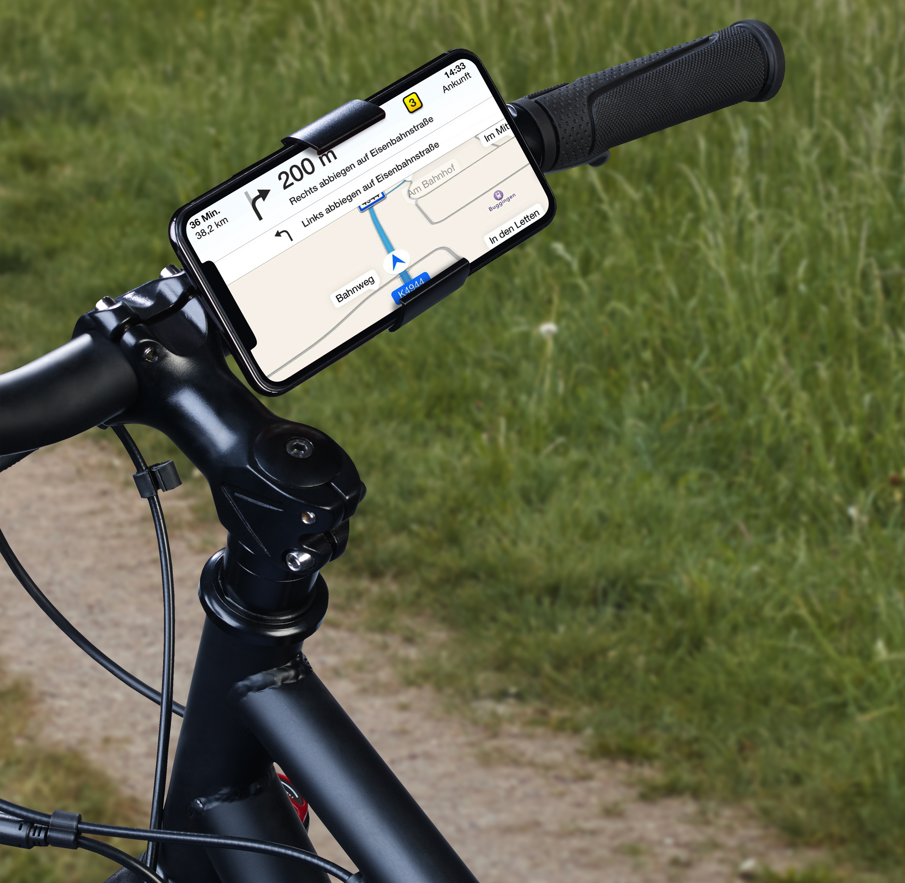 Von der Hosentasche an den Lenker: Das Mobilgerät lässt sich mit der Fahrradhalterung von PEARL schnell und einfach am Lenker vom Fahrrad oder E-Bike befestigen. Ideal beispielsweise für das Navigieren der Fahrrad-Routen. So hat man die Hände frei und das Telefon immer im Blick!