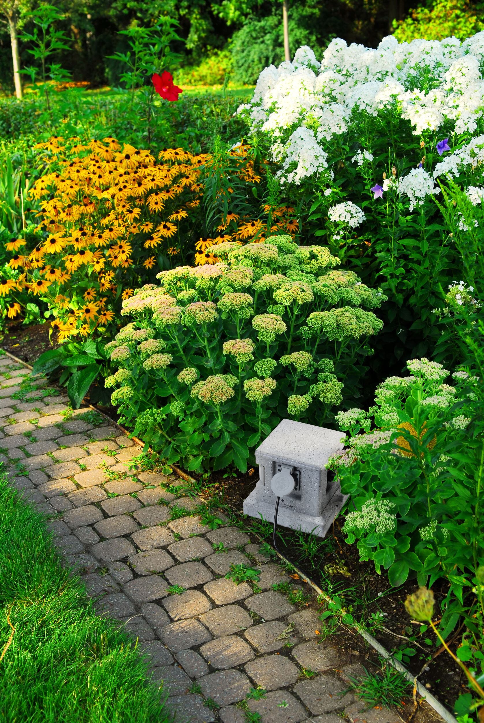 4 smarte Outdoor-Steckdosen für die Elektrogeräte: Mit diesem 4-fach-Verteiler in dezenter Stein-Optik versorgt man im Garten bequem Leuchten, Elektro-Rasenmäher, Elektro-Grill u.v.m. mit Strom. Der Steckdosen-Verteiler ist mit bis zu 3.680 Watt belastbar!