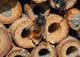 Natur pur für die Nützlinge: Das Hotel besteht aus verschiedenen natürlichen Hölzern und Tannenzapfen von Kiefern. Jedes Zimmer ist anders ausgestattet und somit an die unterschiedlichen Bedürfnisse der kleinen Helfer angepasst.