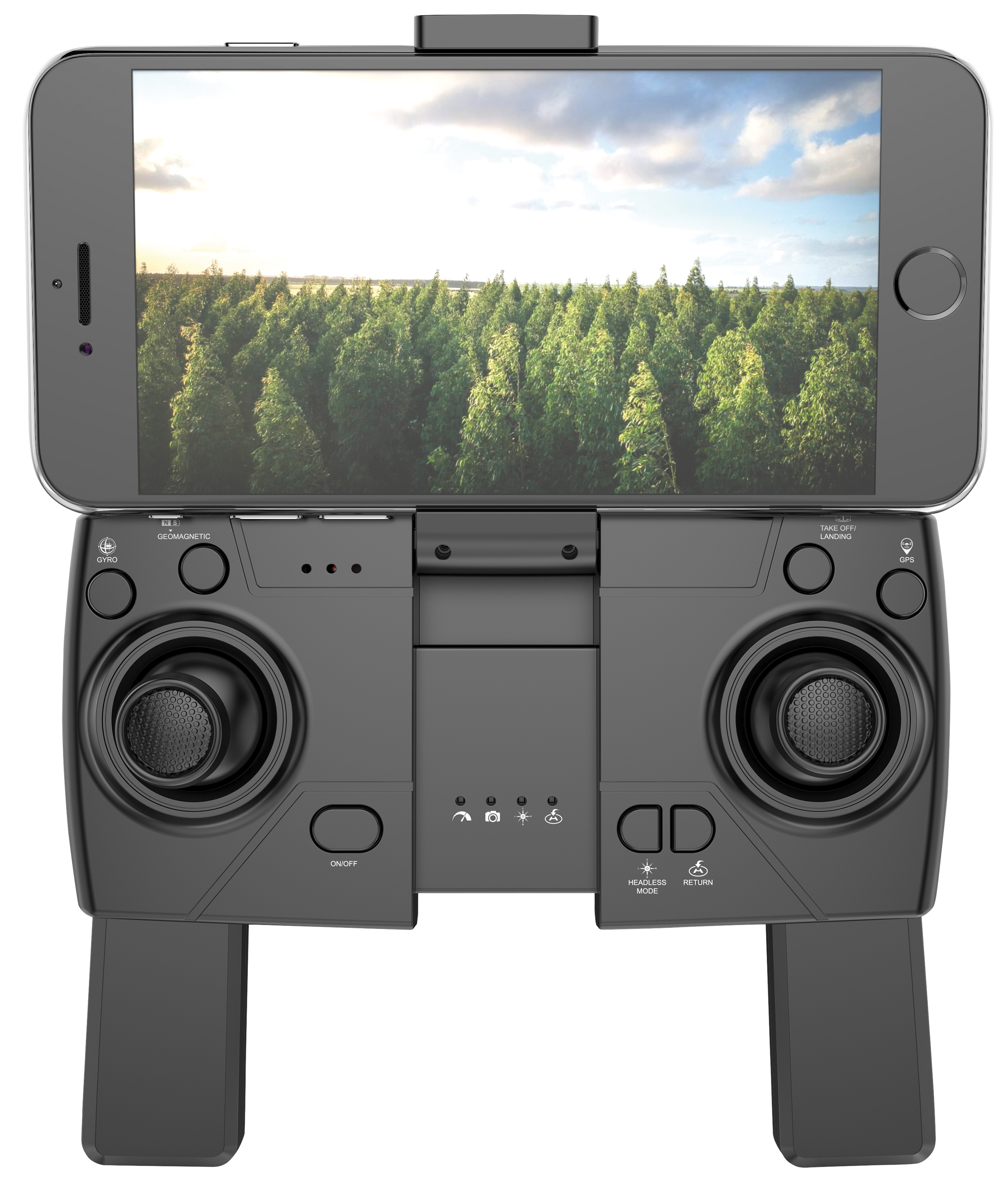 Die Steuerung wird zum Kinderspiel: Dank 6-Achsen-Gyroskop fliegt man mit nur wenig Übung perfekte Bahnen. Die automatische Stabilisierung per Optical Flow hält den Flitzer ruhig in der Luft. Und dank Follow-me-Funktion folgt der Quadrocopter einem automatisch, während man sich fortbewegt.