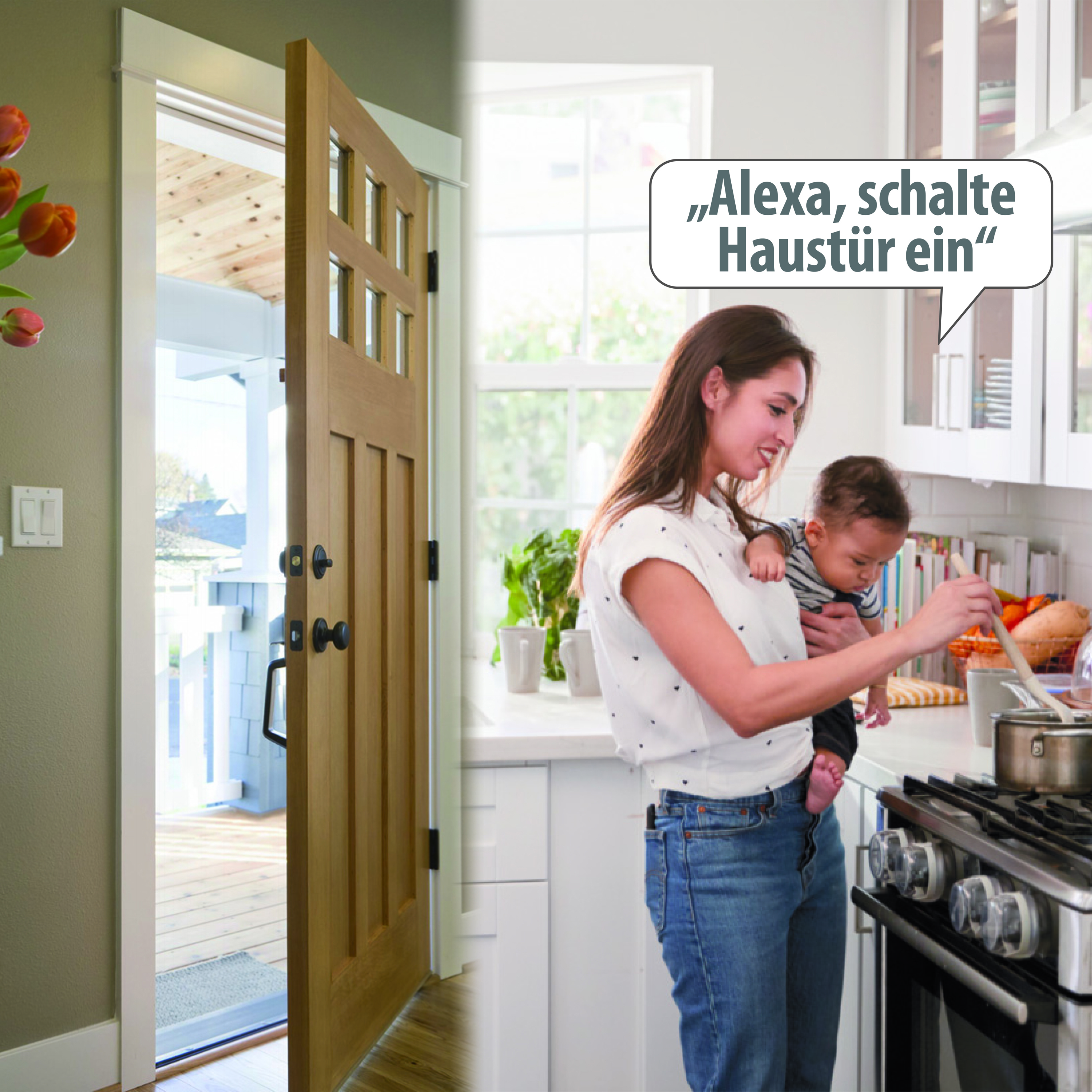 Öffnen auch per Sprachbefehl: In wenigen Schritten richtet man Siri, Alexa und den Google Assistant für den WLAN-Adapter ein. Schon öffnet man das verbundene Schloss mit einer einfachen Anweisung. Das ist besonders praktisch, wenn man gerade alle Hände voll hat oder unter der Dusche steht.