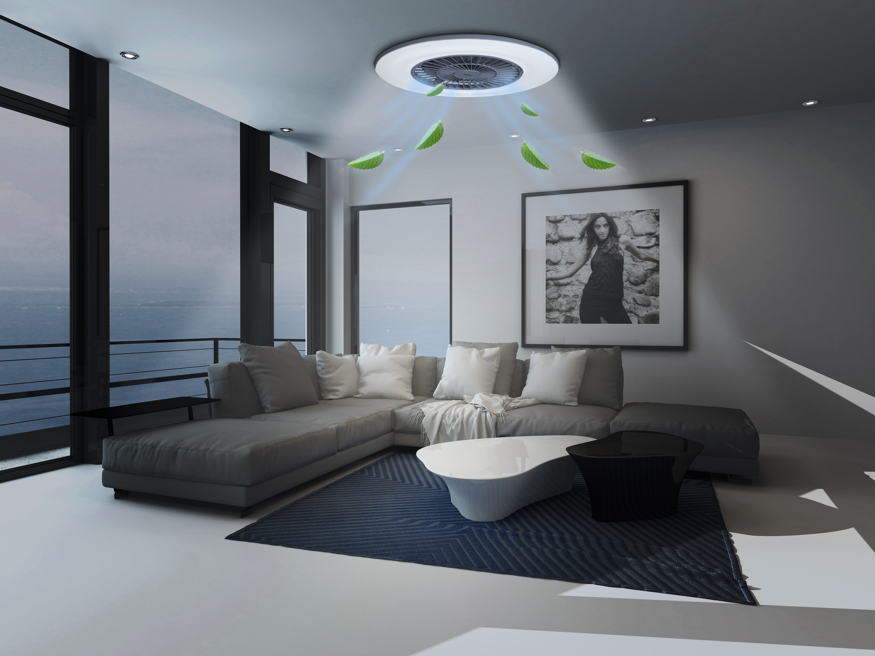 Die etwas andere Deckenleuchte: Die Leuchtfarbe kann man von Warmweiß bis Tageslichtweiß und die Helligkeit bis 3.000 Lumen einfach nach Wunsch steuern. Gleichzeitig lässt man sich vom integrierten Ventilator einen angenehmen Luftzug um die Ohren wehen. Dafür wählt man per App oder Fernbedienung bis zu 6 Geschwindigkeits-Stufen - ideal nicht nur an warmen Sommertagen.