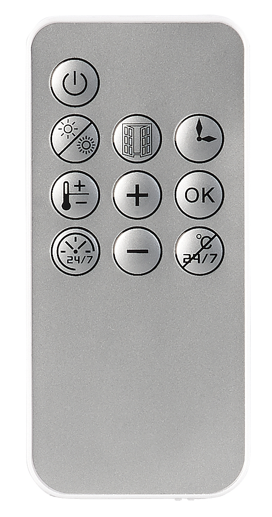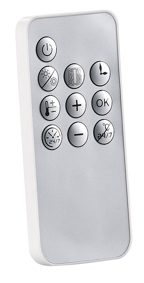 Komfortable Bedienung vom Sofa aus: Alle Einstellungen steuert man bequem per Fernbedienung. Die Einstellungen erkennt man direkt auf dem LED-Display im Heizlüfter.