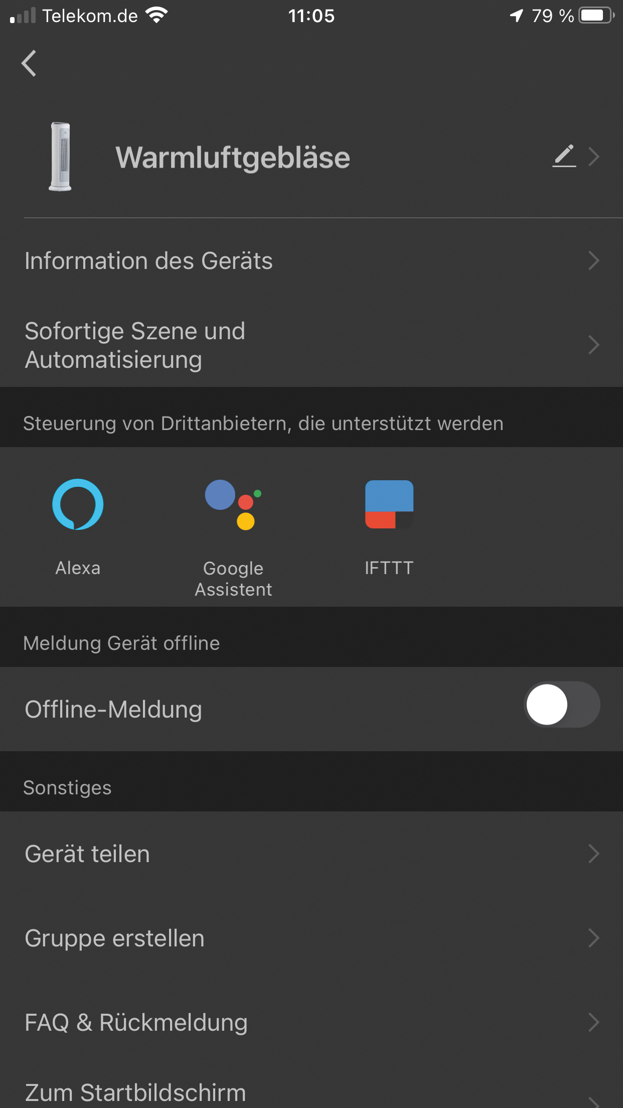 Das Smart Home automatisieren: Sind andere kompatible Geräte mit der App gekoppelt, steuert man alles zentral - direkt über das Smartphone! Die Geräte lassen sich sogar miteinander vernetzen: Beispielsweise lässt man den Heizlüfter einschalten, wenn eine bestimmte Temperatur unterschritten wird.