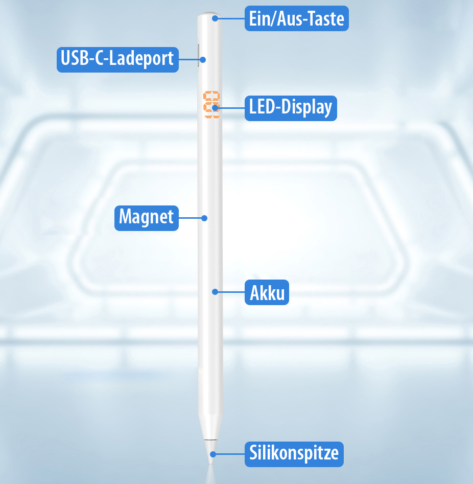 Extra-schmale Spitze: Dank 1 mm Durchmesser tippt, schreibt und zeichnet man mit höchster Präzision! Die Linienbreite ändert man einfach durch Neigen des Stifts. Für noch genaueres Zeichnen, wie auf Papier. Nebenbei vermeidet man lästige Fingerabdrücke auf dem empfindlichen Display.