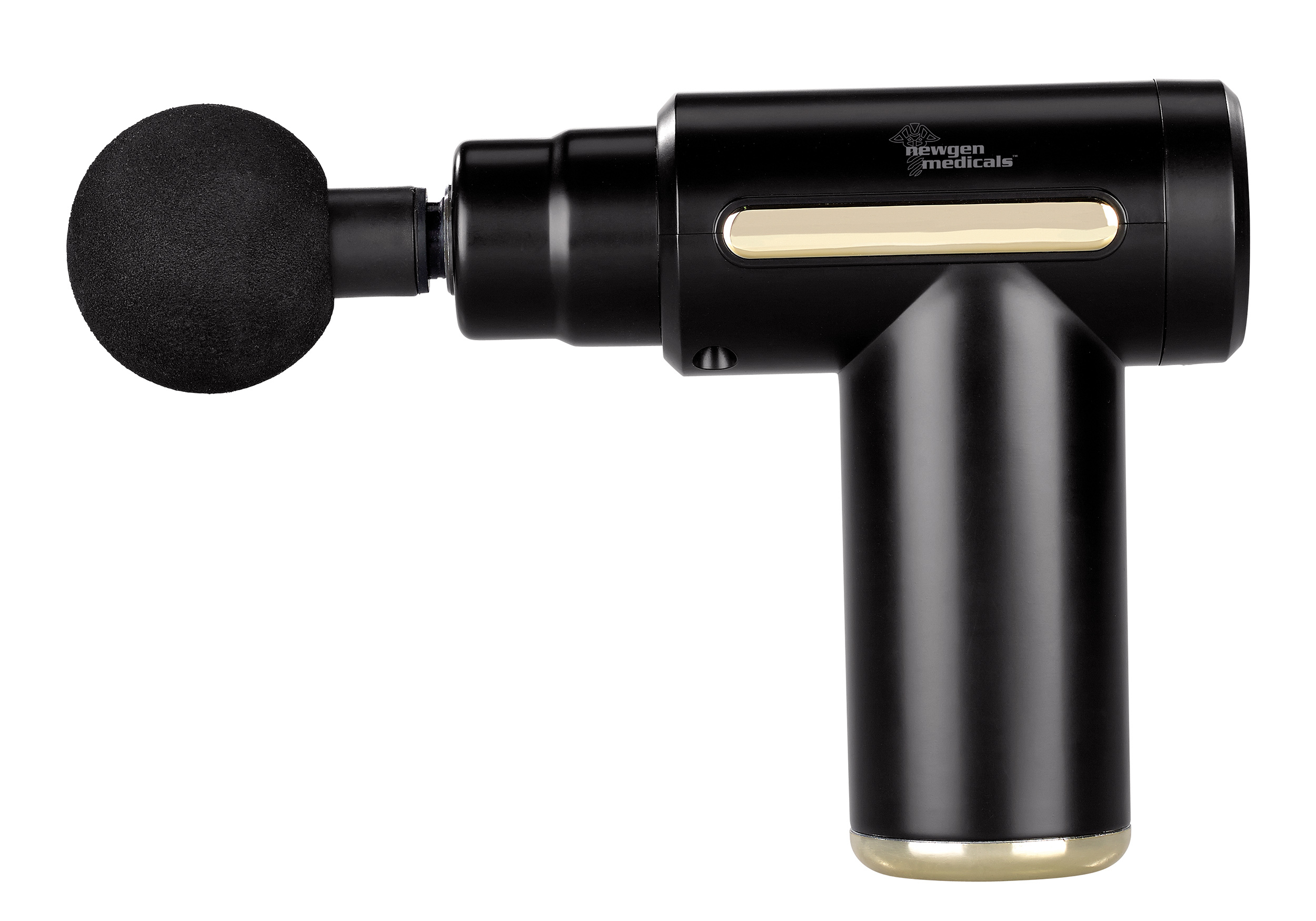Wohltuend für den ganzen Körper: So spart man sich den ein oder anderen Massage-Termin beim Profi. Denn mit der neuen Akku-Massagepistole von newgen medicals mit 4 Wechsel-Köpfen und 6 Intensitäts-Stufen wird die Muskulatur ganz nach den eigenen Bedürfnissen massiert!