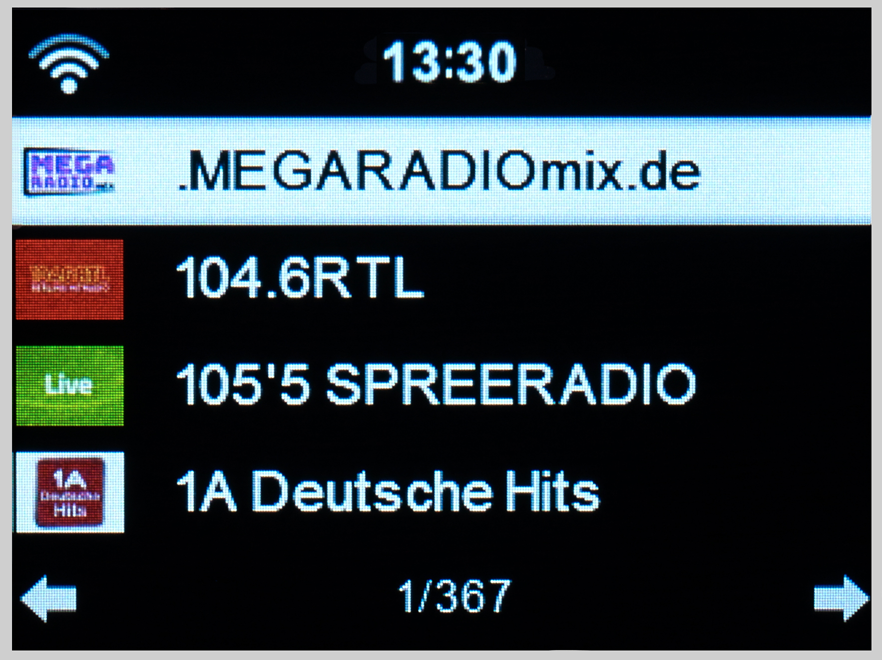 Großes, vollgrafisches Farb-Display: Man sieht alle Informationen zum gewählten Sender, zu aktuell gespielten Musiktiteln sowie Datum und Uhrzeit auf einen Blick. Im Standby-Modus zeigt das Display die aktuelle Wettervorhersage, Börseninformationen u.v.m. an.