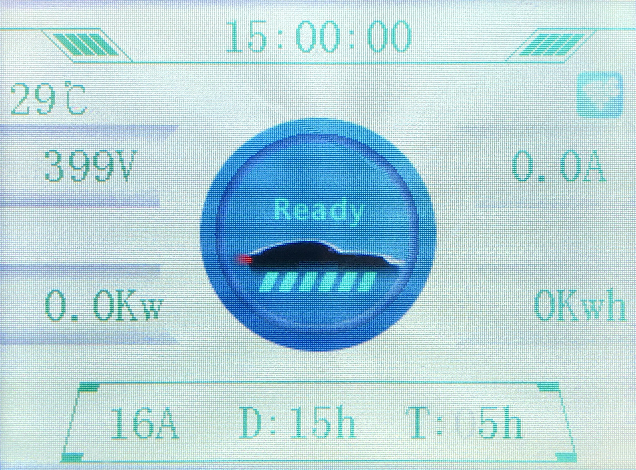 Bequeme Steuerung am Gerät: Die Grundeinstellungen, wie die Begrenzung der Ladedauer lassen sich bequem direkt an der Wallbox vornehmen. Auf dem LCD-Farbdisplay überwacht man jederzeit sämtliche Ladedaten.