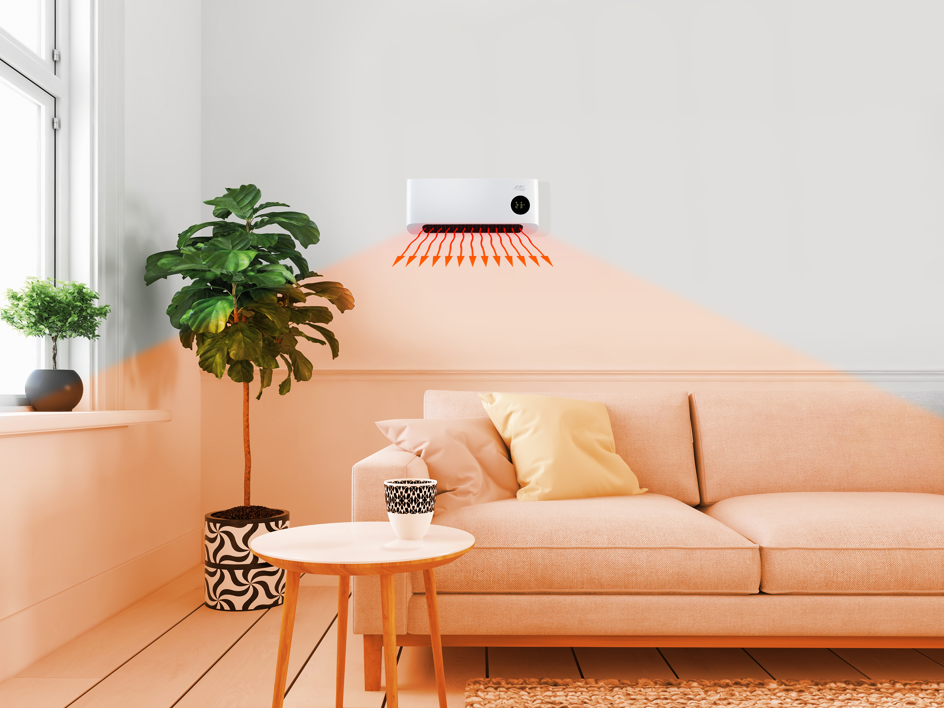 Ganz von alleine schnell warm: Die Heizleistung reguliert der WLAN-Wandheizlüfter von Sichler Haushaltsgeräte ganz von selbst. In Sekundenschnelle spürt man die vom hochwertigen Keramik-Heizelement erzeugte Wärme. Dazu stellt man dafür einfach die gewünschte Wohlfühl-Temperatur ein und der Raum wird entsprechend beheizt.