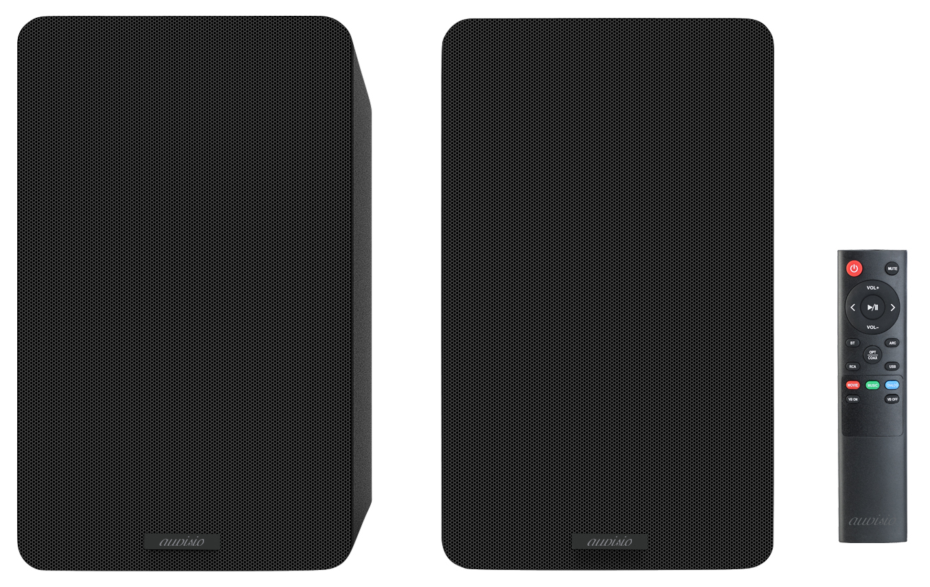 Die aktiven Stereo-Regallautsprecher von auvisio lassen sich bequem per Fernbedienung steuern. So hat man auch vom Sofa aus die volle Kontrolle, regelt Lautstärke, Klang oder den gewünschten Eingang und steuert die Musik-Wiedergabe. Die Grundeinstellungen nimmt man auch direkt an der Lautsprecherbox vor.