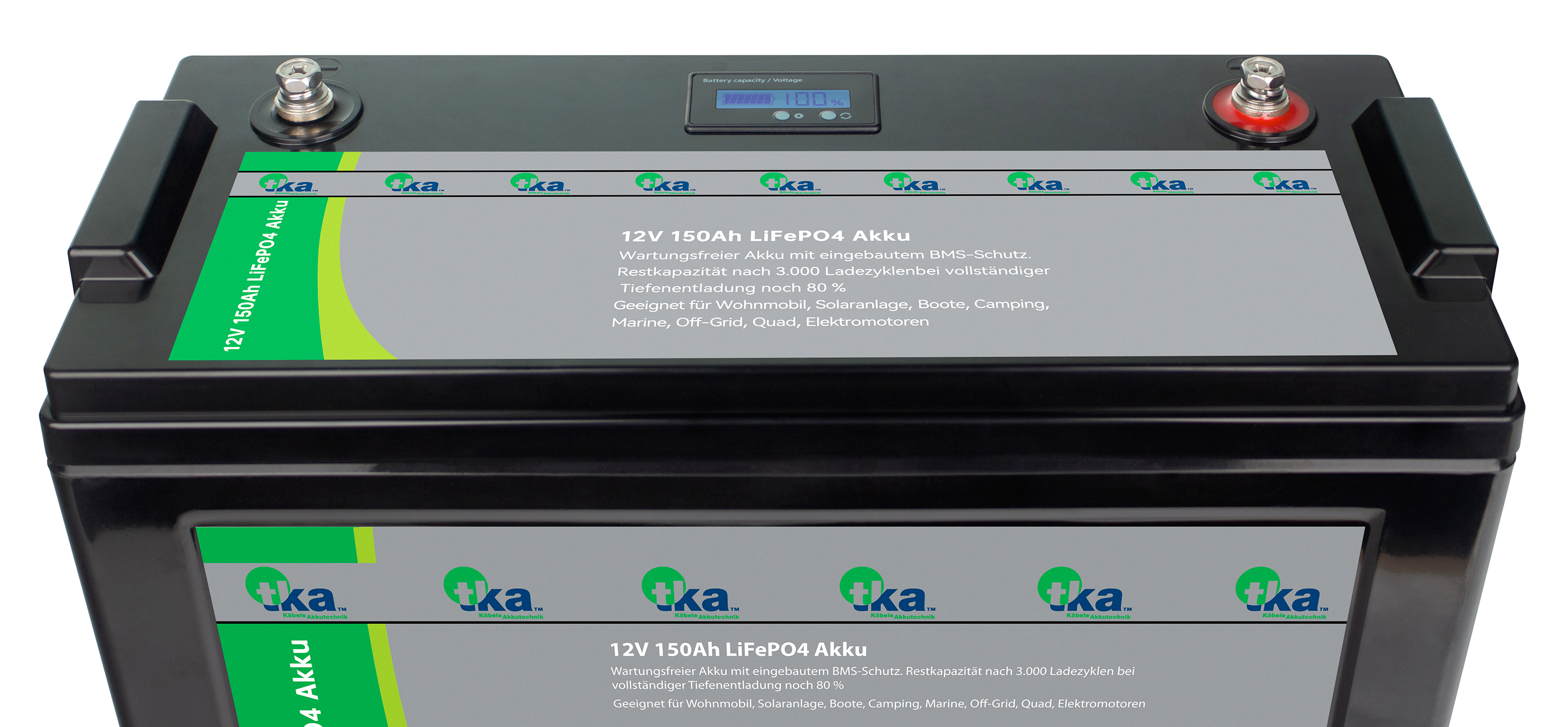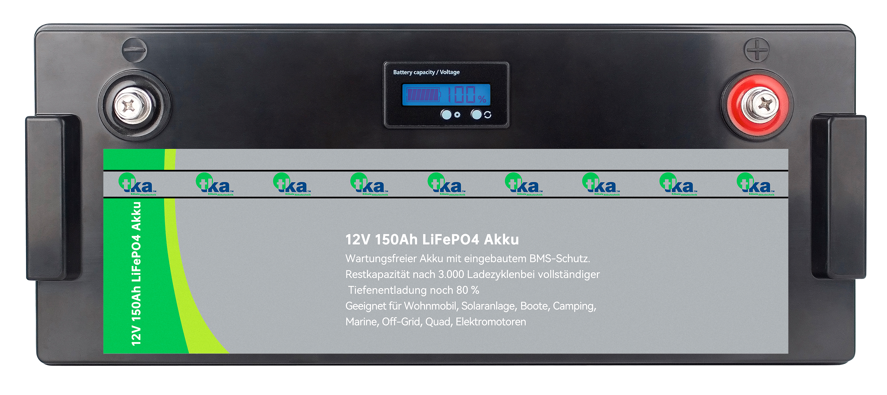 tka Köbele Akkutechnik LiFePO4-Akku mit 12 V, 150 Ah / 1.920 Wh, BMS, LCD-Display, App