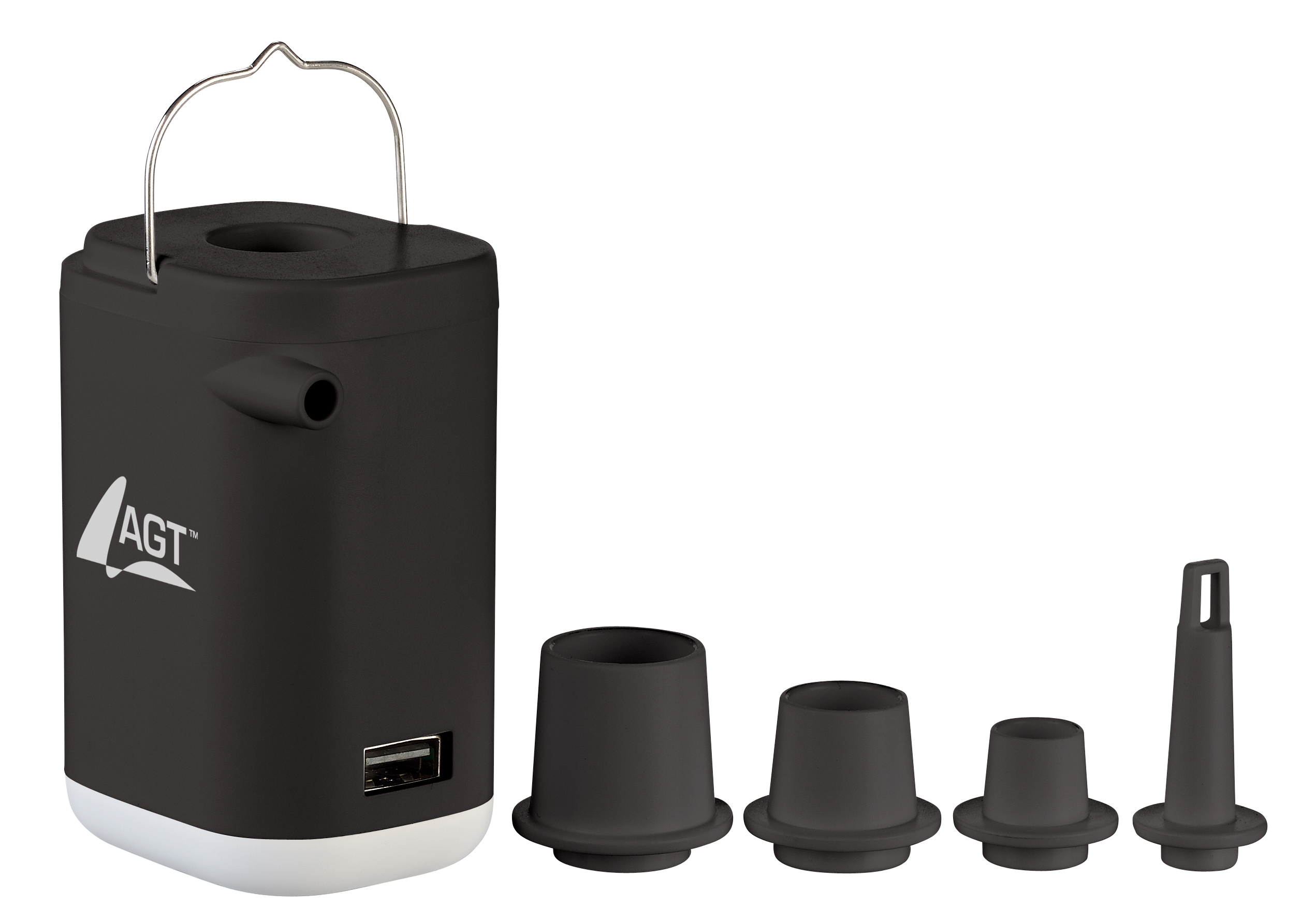 (lifepr) (Buggingen, 02.06.2023) Keine Plackerei mehr mit dem Aufpumpen von Luftmatratzen, Bällen, Planschbecken! Die Mini-4in1-Luftpumpe ALP-230 von AGT pumpt dank Akku überall nicht nur auf, sondern ist auch zum Abpumpen geeignet. Außerdem fungiert sie auch als Leuchte und Powerbank.
