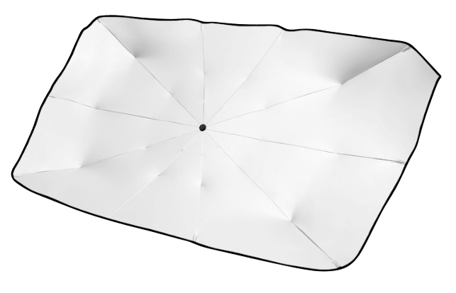 (lifepr) (Buggingen, 06.06.2023) Der wärmeisolierende Sonnenschutz für die Autoscheibe von Lescars hält das Wageninnere auch an heißen Tagen angenehm kühl. Der Clou: Er wird, wie ein Regenschirm aufgespannt und nach Gebrauch einfach in der mitgelieferten Aufbewahrungstasche verstaut.