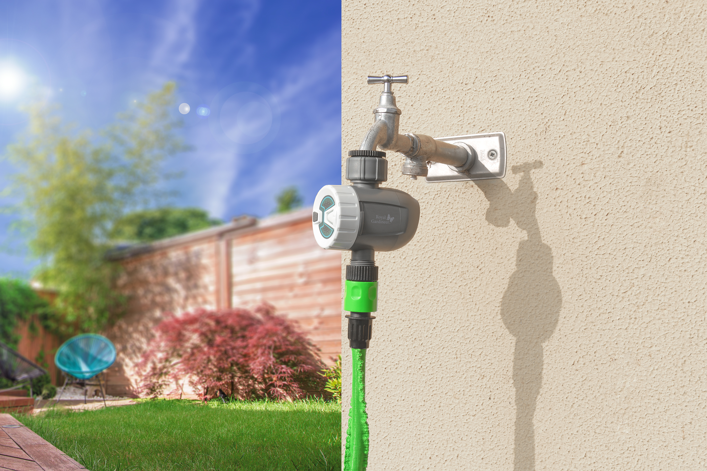 Mit dem smarten programmierbaren Bewässerungscomputer BWC-520.bt von Royal Gardineer bewässert man seinen Garten komplett automatisch - ob an heißen Sommertagen oder während der Urlaubszeit: Von nun an sind die Pflanzen stets optimal mit Wasser versorgt.