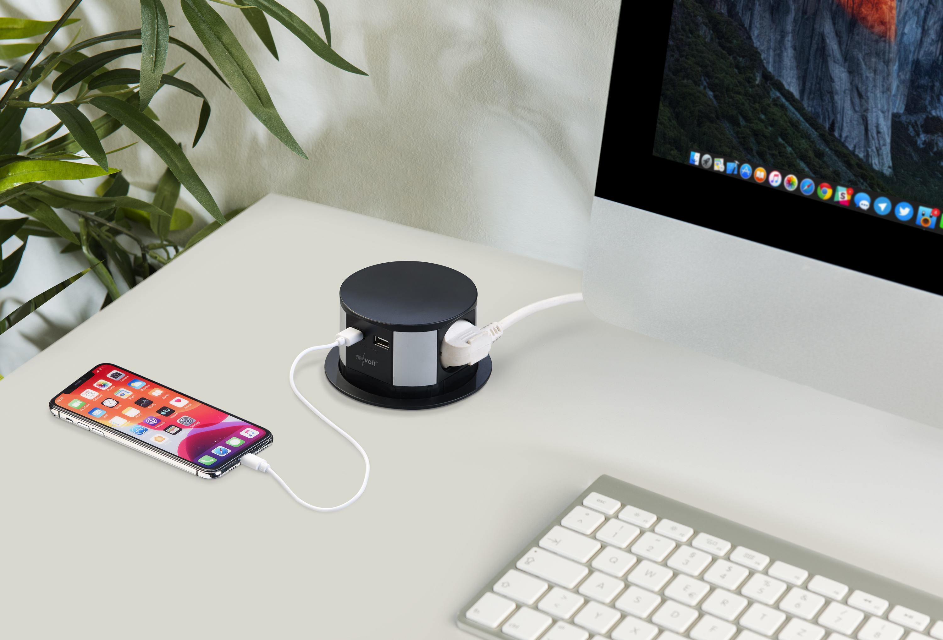 Extra kompakte Steckdosenleiste - ideal für Büro, Küche und Heimwerkstatt: In Schreibtisch, Arbeitsplatte oder Werkbank eingelassen, nimmt die Einbau-Steckdosenleiste mit USB-Lade-Buchse von revolt keinen Platz weg. Ein leichter Fingerdruck genügt: Schon fährt die 3-fach-Steckdosenleiste aus. Genauso leicht fährt man sie auch wieder ein.
