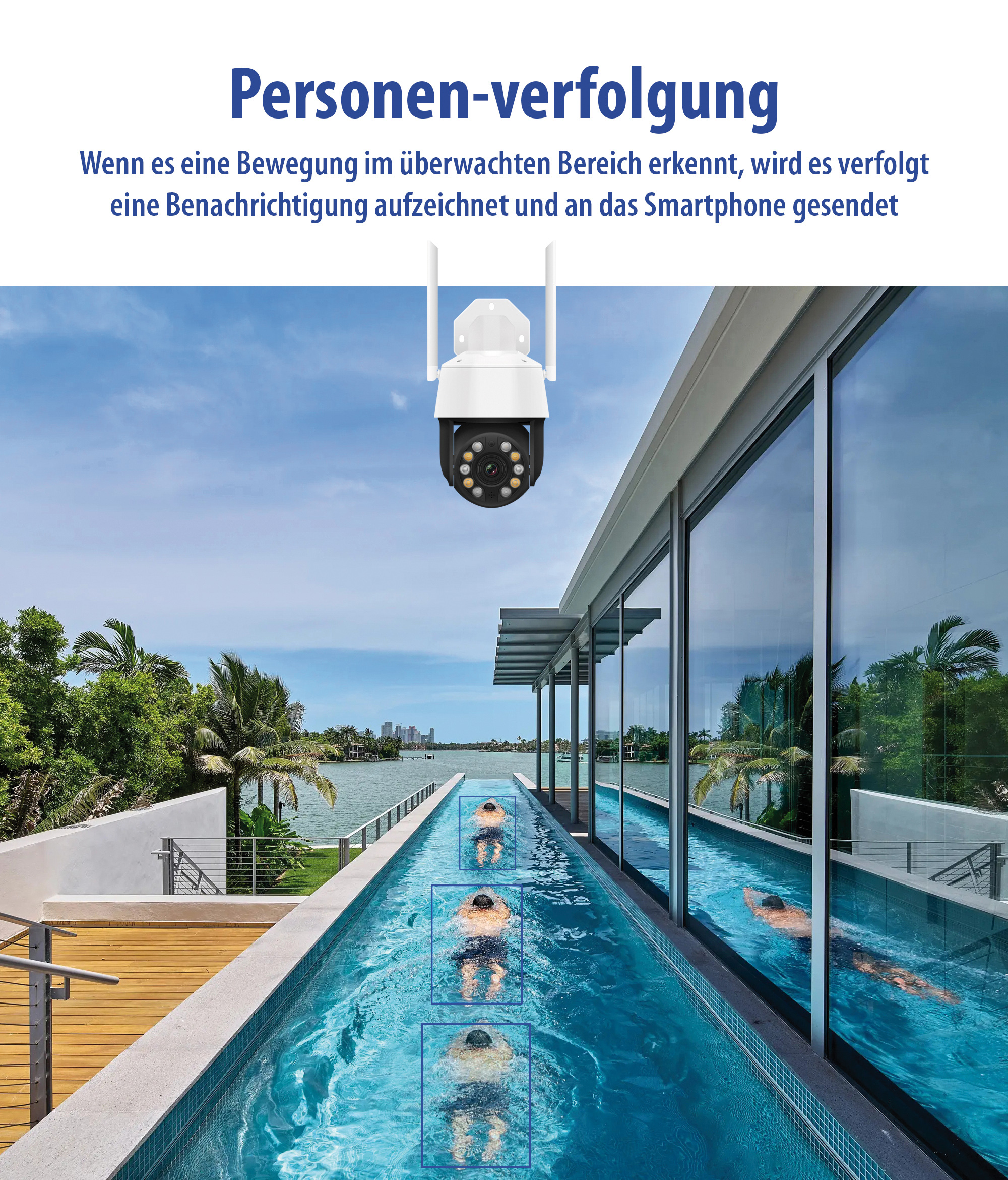 (lifepr) (Buggingen, 22.06.2023) Haus und Hof lassen sich tags wie nachts in 2K-Auflösung und 360°-Sichtfeld mit der der PTZ-Überwachungskamera IPC-398.app von 7links bequem überwachen. Dank der kostenlosen App „ELESION“ hat man auch von unterwegs Zugriff auf die Steuerung und sieht, was sich vor der Linse abspielt. Und per Mikrofon und Lautsprecher werden sogar potentielle Einbrecher abgeschreckt!