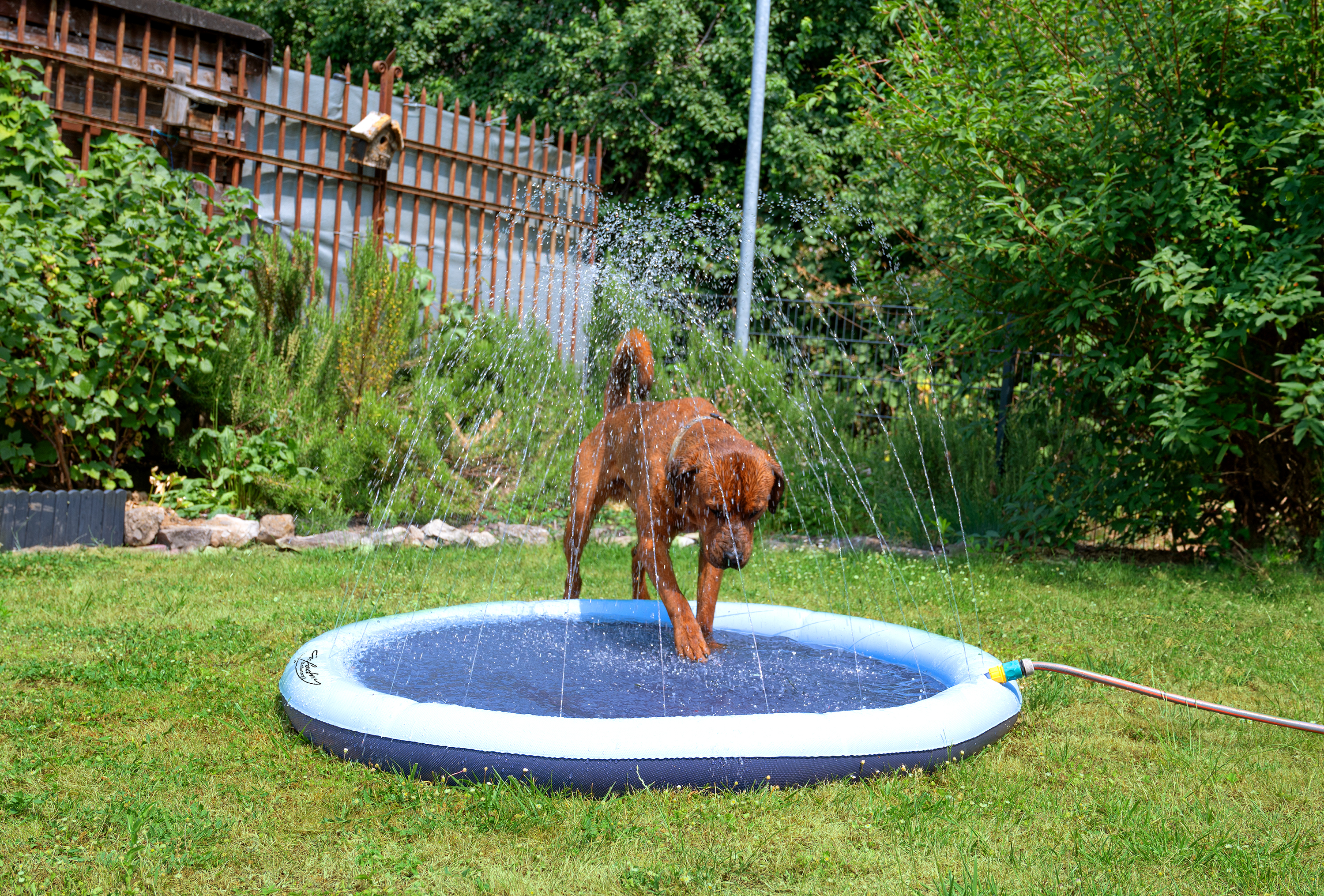 (lifepr) (Buggingen, 10.07.2023) Die große Sommerfreude: Die Wasser-Spielmatte für Kinder & Hunde mit Schlauchanschluss von infactory bietet bei heißen Temperaturen Abkühlung und jede Menge Spaß für Kinder und Hunde!