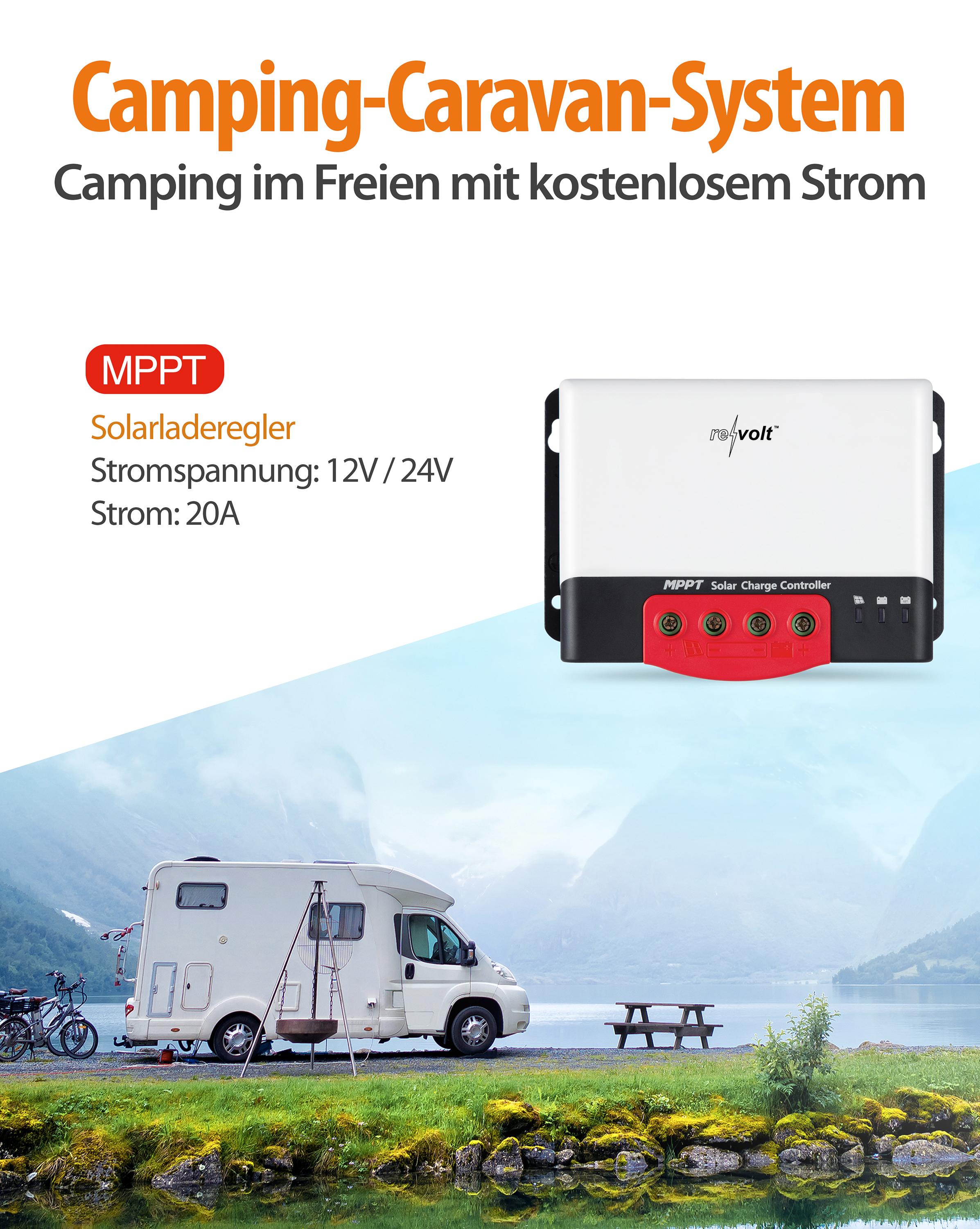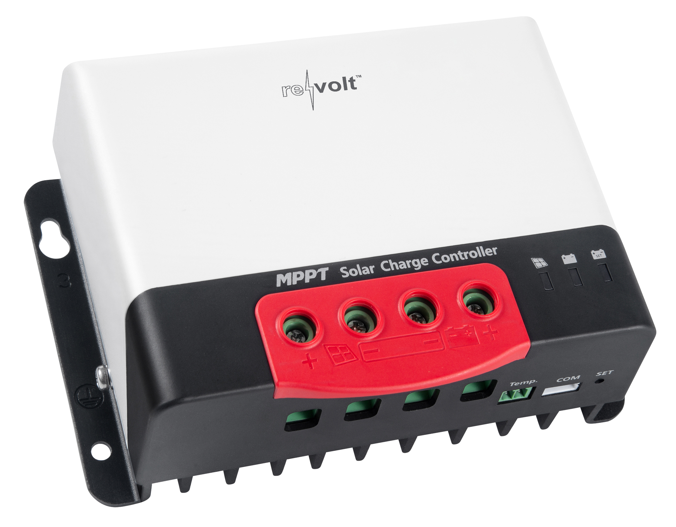 Die Akkus lädt man besonders effizient und nutzt den MPPT-Solarladeregler von revolt für alle Solarstrom-Systeme mit einer Spannung von bis zu 92 Volt. So lädt man die 12- oder 24-Volt-Speicherbatterie ruckzuck voll.