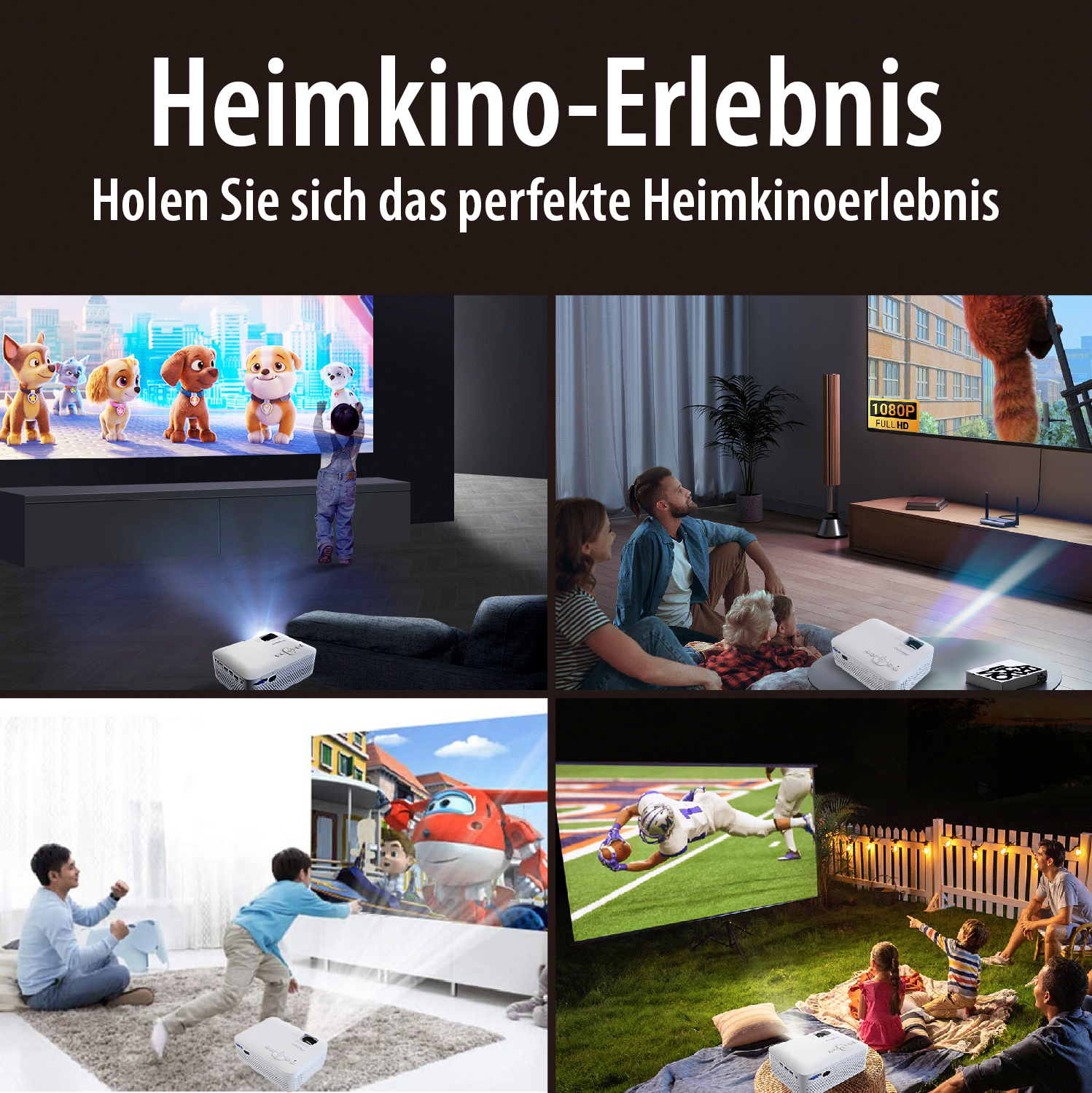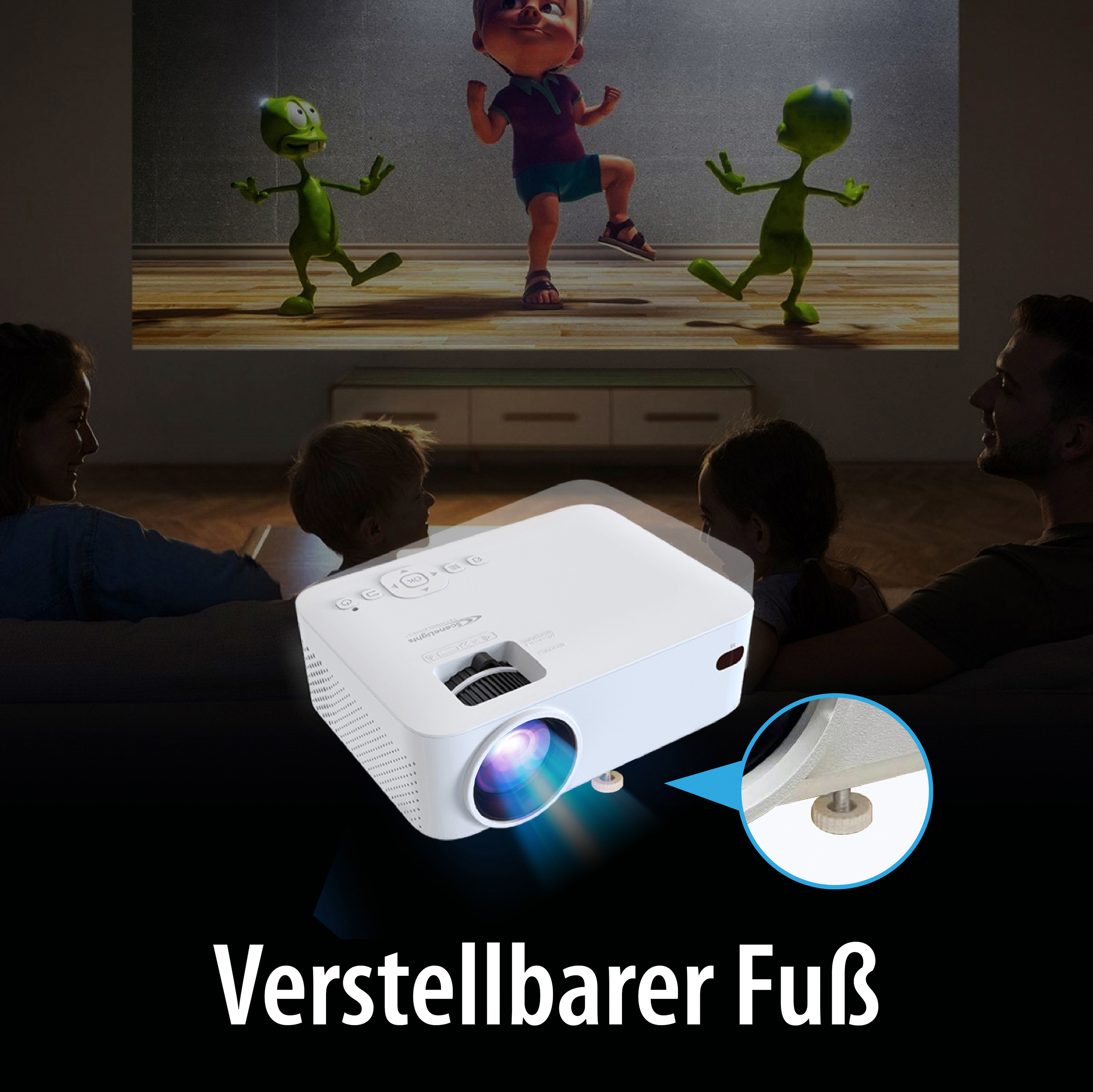 Großes Kino im eigenen Wohnzimmer genießen: Der LED-Heim-Beamer von SceneLights bringt Filme, Videoaufnahmen, Fotos und mehr perfekt zur Geltung - auf bis zu 2,5 Metern Diagonale!