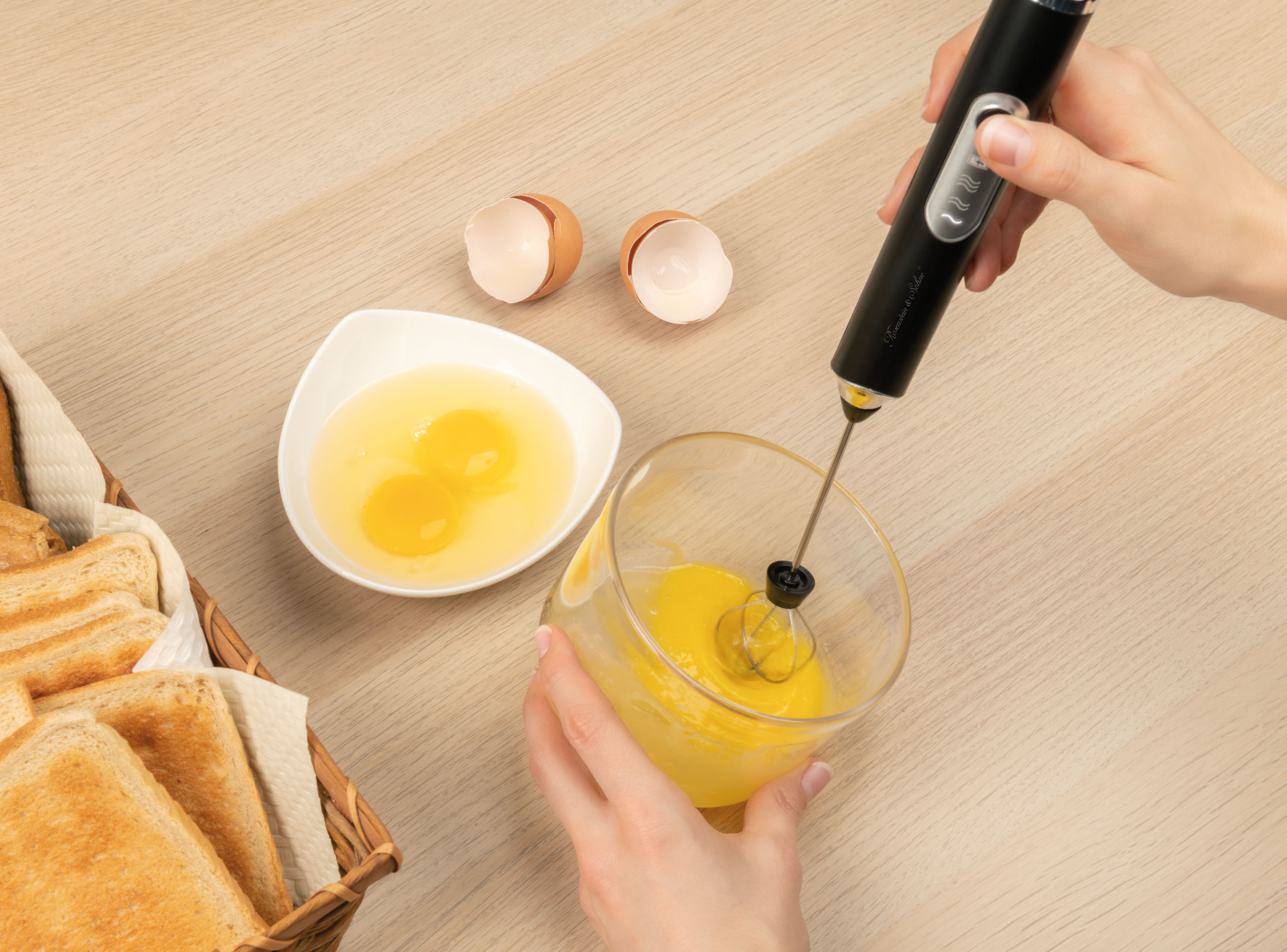 Ideal auch für Hobbybäcker: Der Quirl-Aufsatz eignet sich hervorragend, um ohne viel Kraftaufwand Eier und Sahne zu schlagen. Oder man verwendet ihn auch zum Verrühren von Babybrei und Eiweiß-Shakes sowie zum Quirlen von Teig.