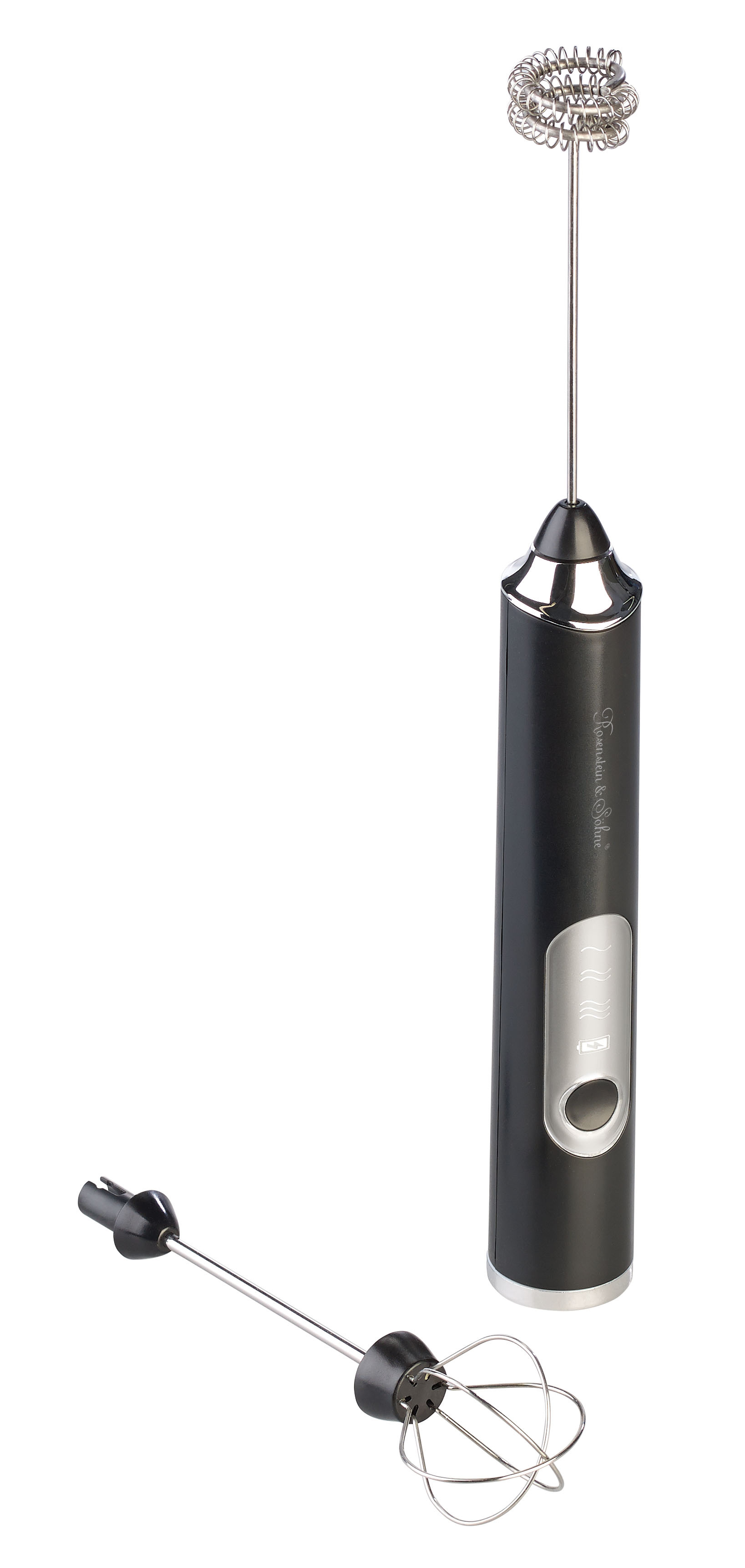 Rosenstein & Söhne 2er-Set 2in1-Akku-Milchaufschäumer & Quirl, 3 Geschwindigkeiten