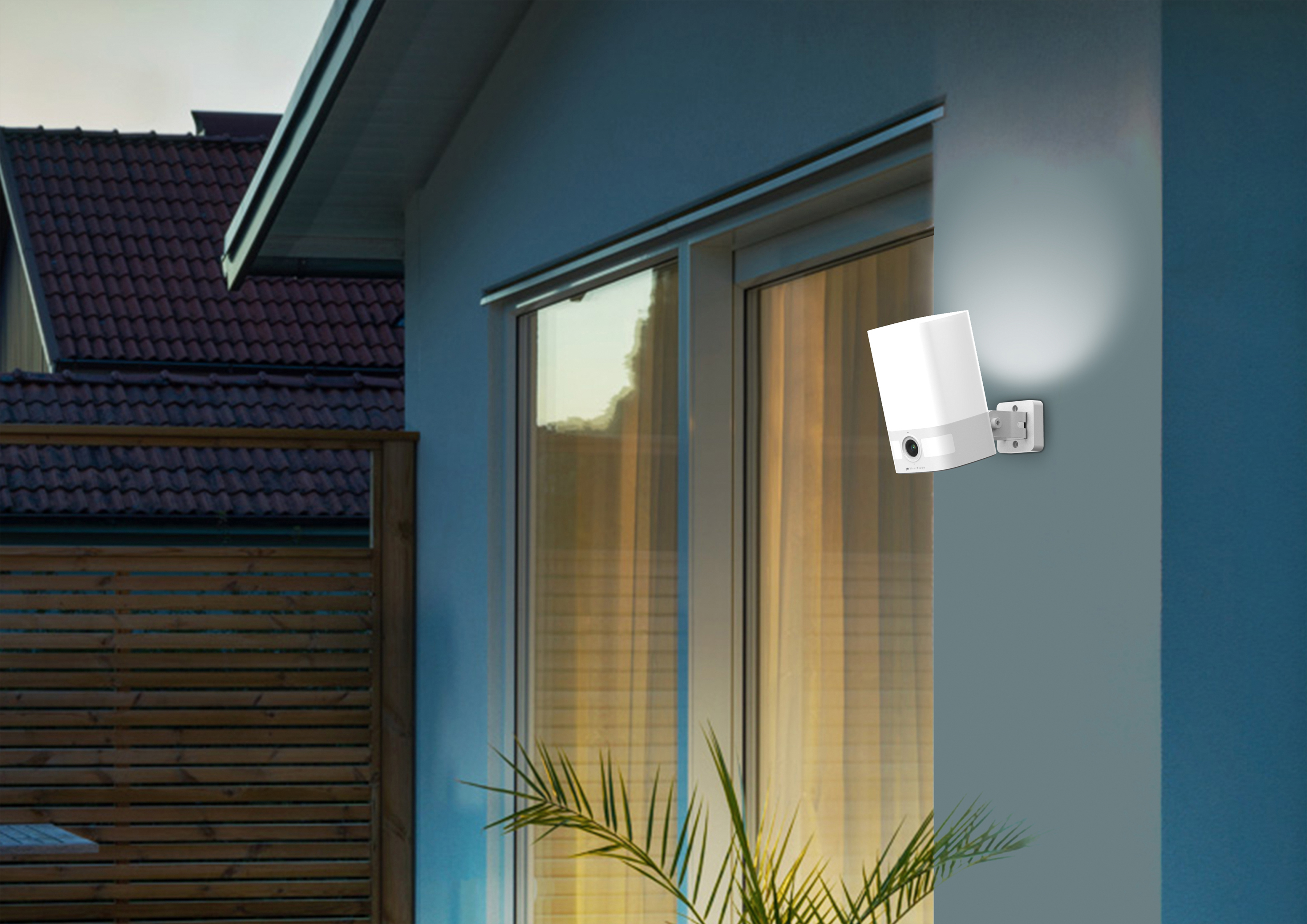 (lifepr) (Buggingen, 10.08.2023) Mit der 2K-Akku-Überwachungskamera IPC-400.led von VisorTech überwacht man Haus und Hof dank Flutlicht auch bei Nacht in Farbe. Per kostenloser App „ELESION“ sogar von überall weltweit!