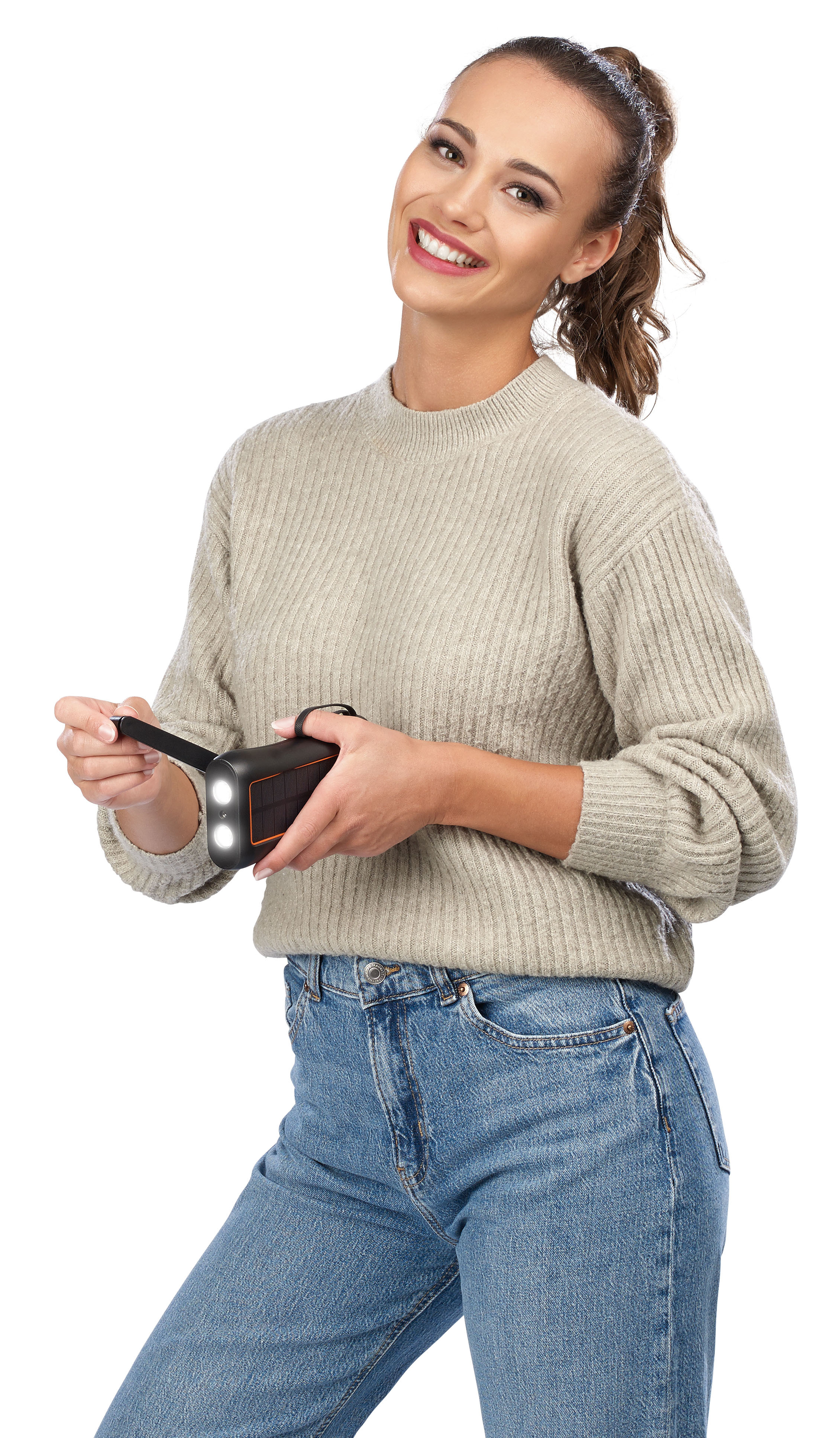 Autarke Stromerzeugung per Hand: Geht die Energie zur Neige und weit und breit ist keine Steckdose in Sicht, lädt man die Powerbank im Notfall einfach manuell auf - per Handkurbel! So stellt man sicher, dass Smartphone, Navi & Co. jederzeit mit Strom versorgt werden.