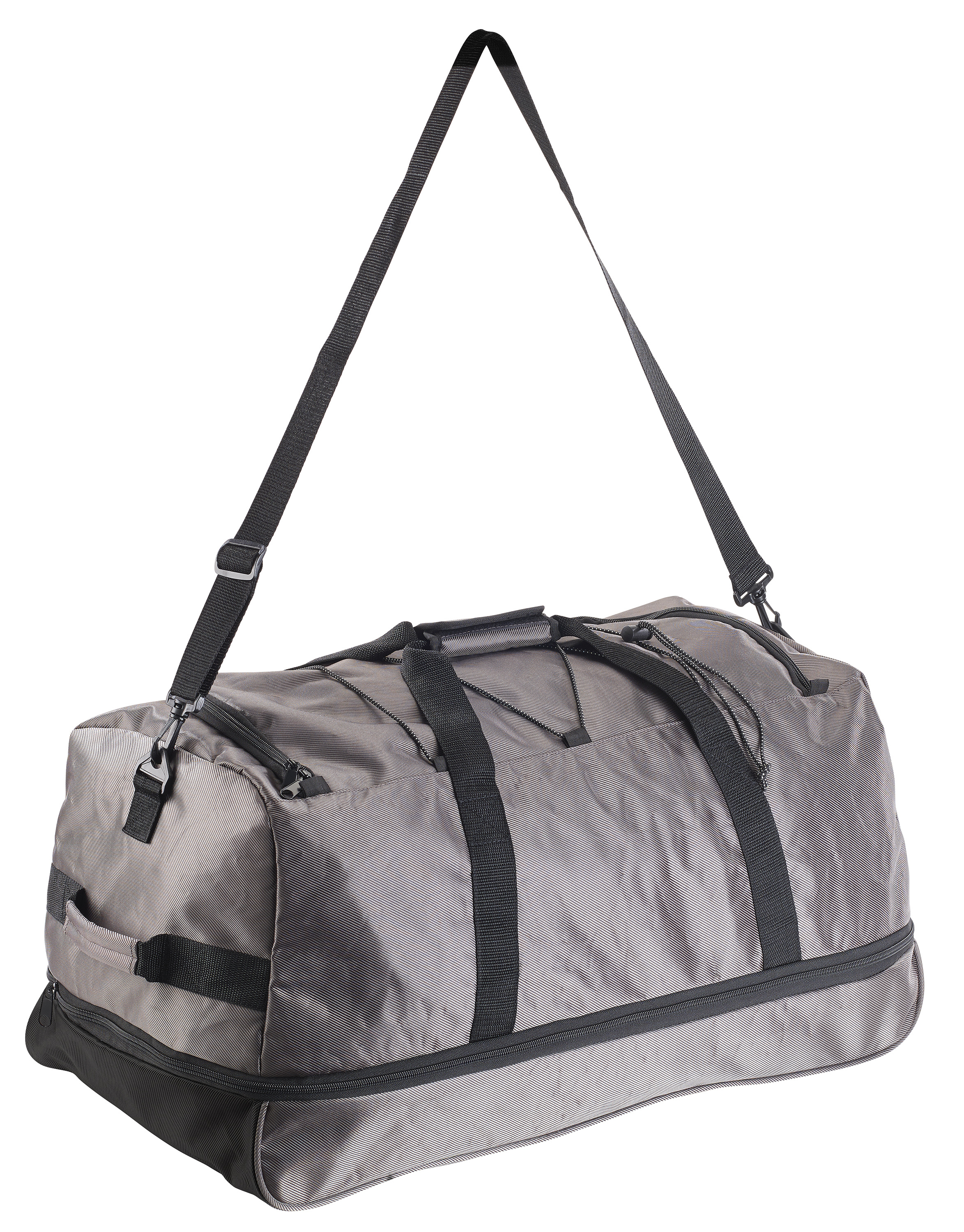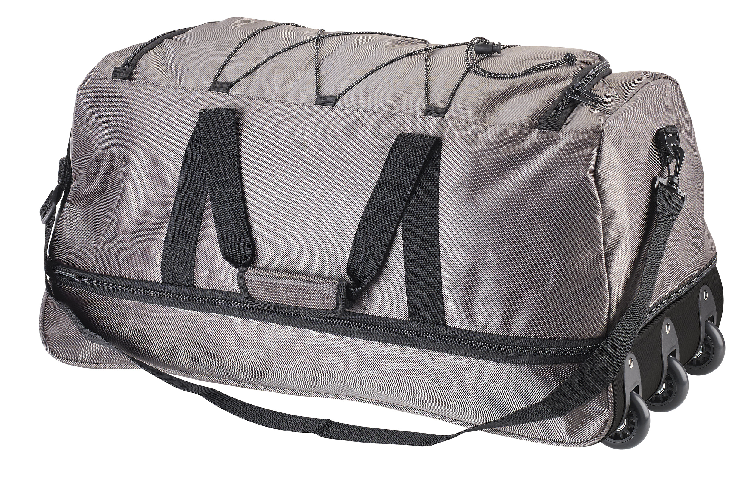 Die Tasche wie einen Trolley ziehen: Das Reisegepäck oder die Sportsachen lassen sich bequem mit den Tragegriffen oder per Schultergurt tragen. Ist die faltbare Trolley-Sport- und Reisetasche schwer, lässt sie sich dank 3 integrierter Rollen extra-bequem ziehen.