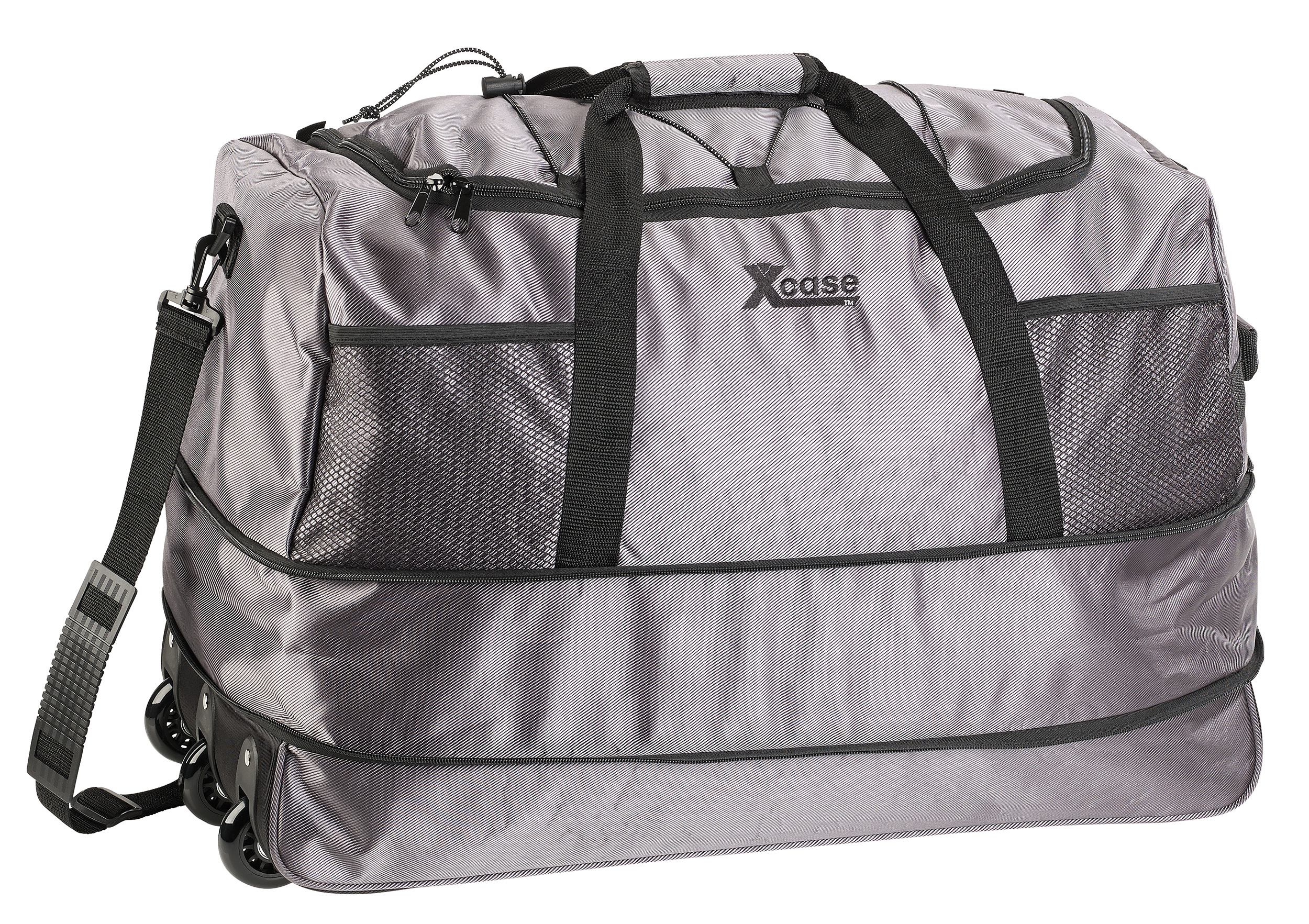 (lifepr) (Buggingen, 31.08.2023) Die Reisetasche mit Trolley-Funktion von Xcase lässt sich in der Größe variabel von 75 – 100 Liter Stauraum anpassen und verfügt über Außen-Netz-Taschen in denen sich beispielsweise Snacks oder Getränke verstauen lassen. Damit ist sie der ideale Begleiter für Reisen, Sport oder auch den Saunabesuch!