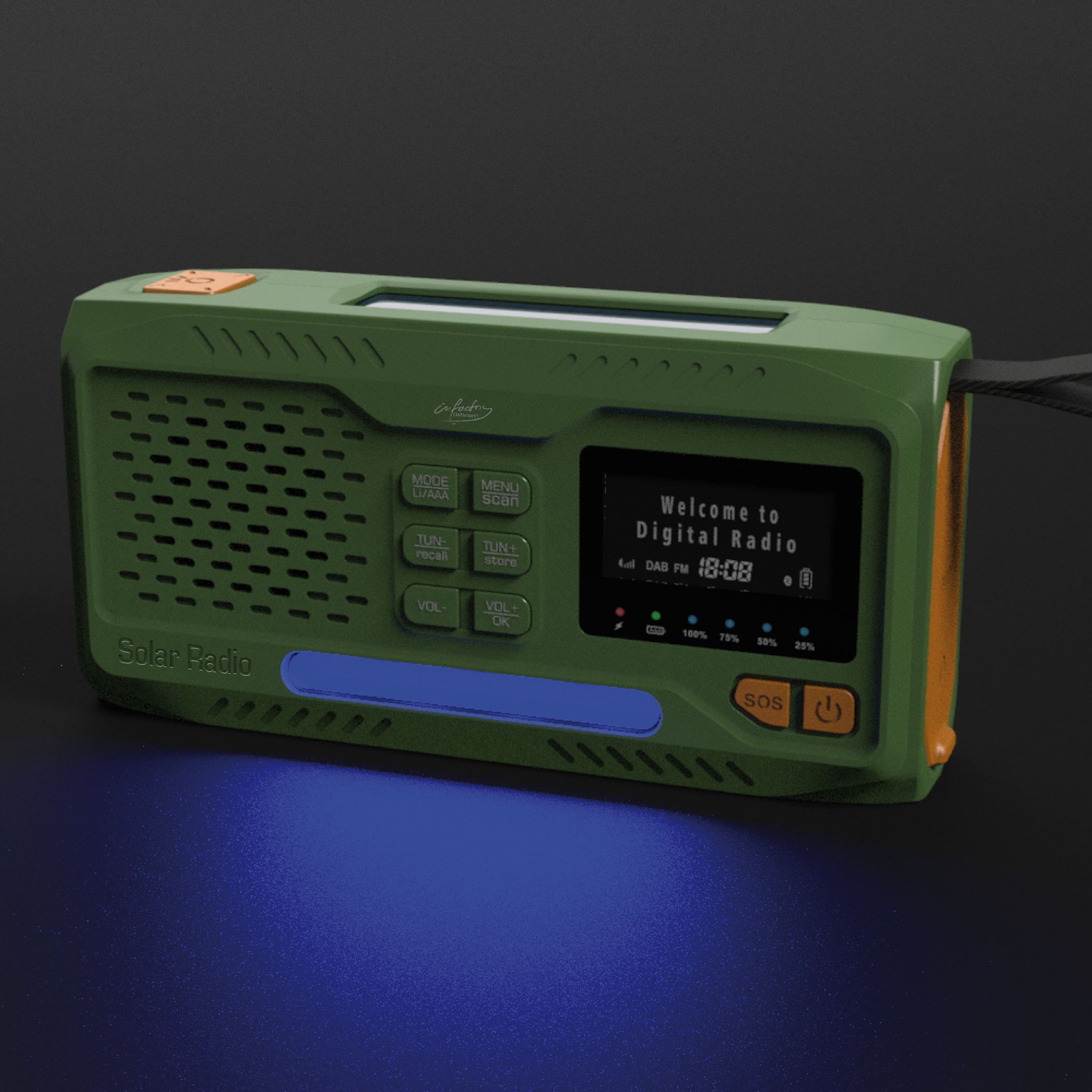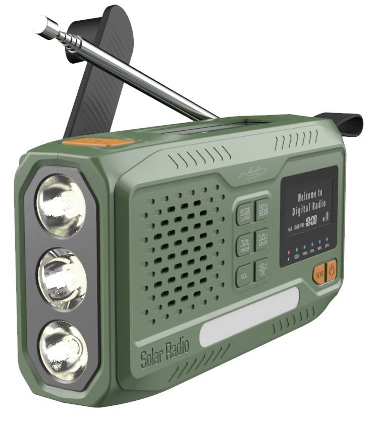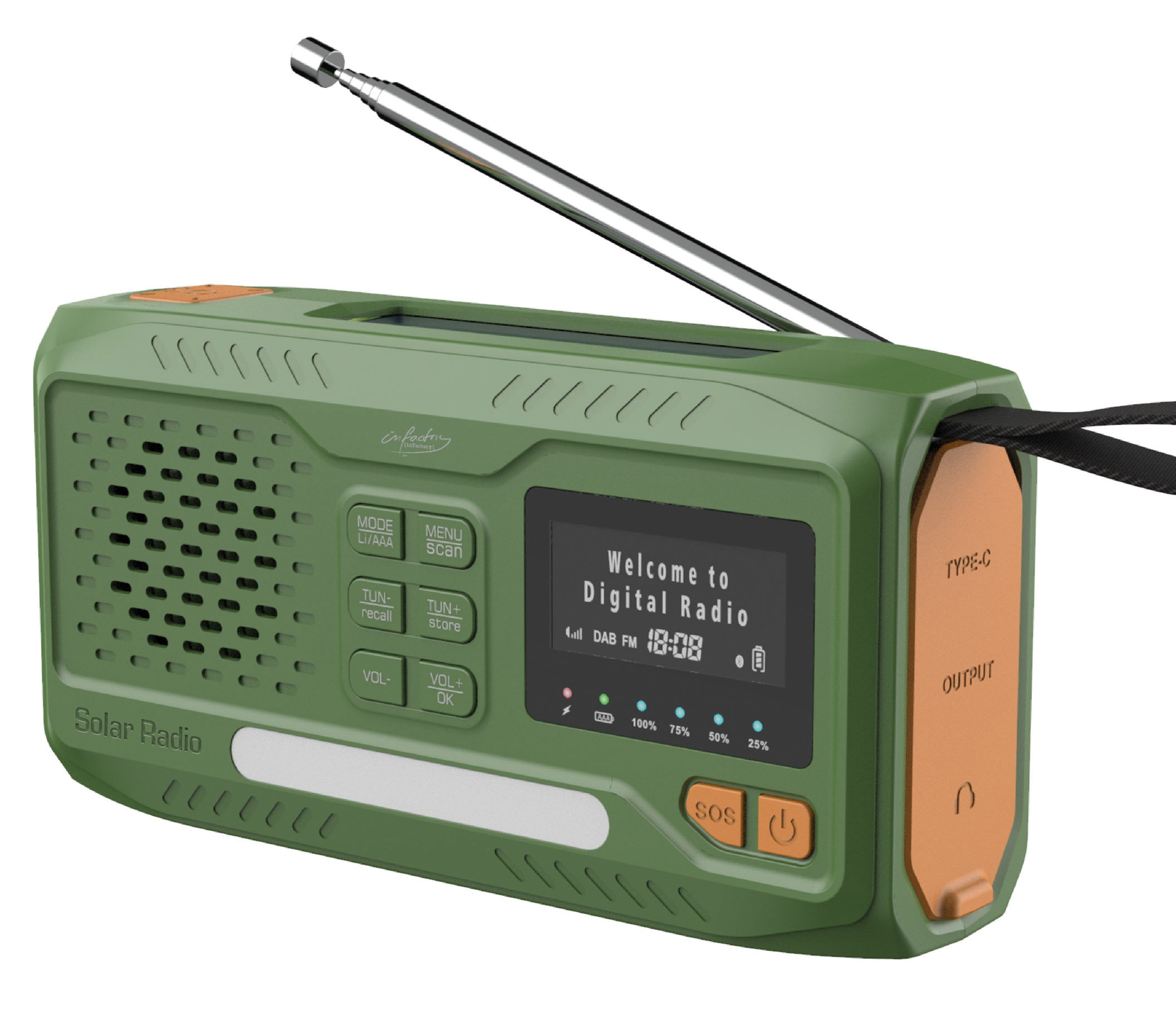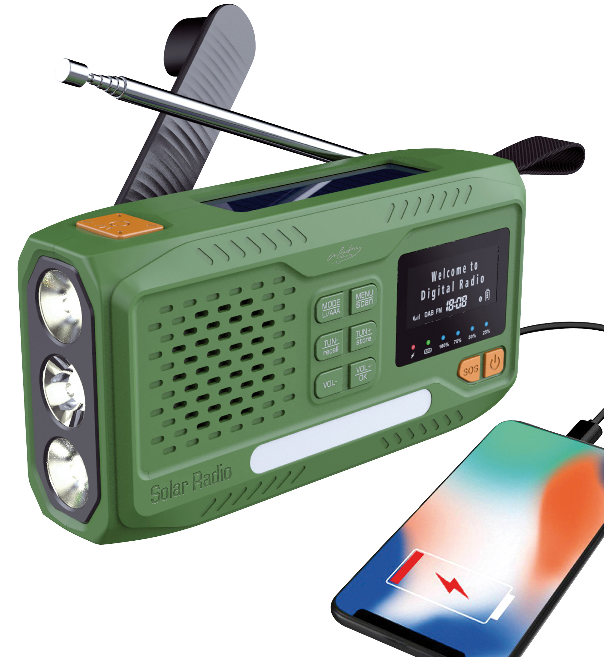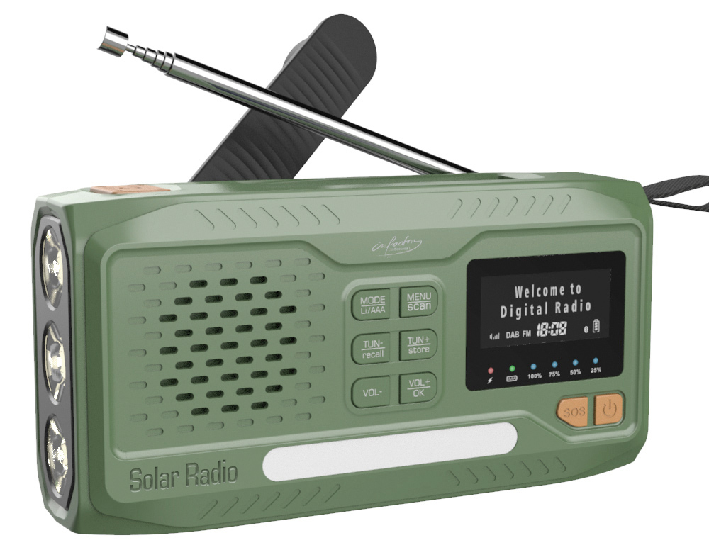 (lifepr) (Buggingen, 06.09.2023) Das mobile DAB+-Kurbelradio SOL-1550 von infactory ist ein Tausendsassa: Es spielt die Lieblingsmusik, spendet Licht, empfängt Notfallwarnungen, lädt externe Geräte auf, verfügt über eine SOS-Funktion und ist mittels Solarpanel und Handkurbel autark zu betreiben.