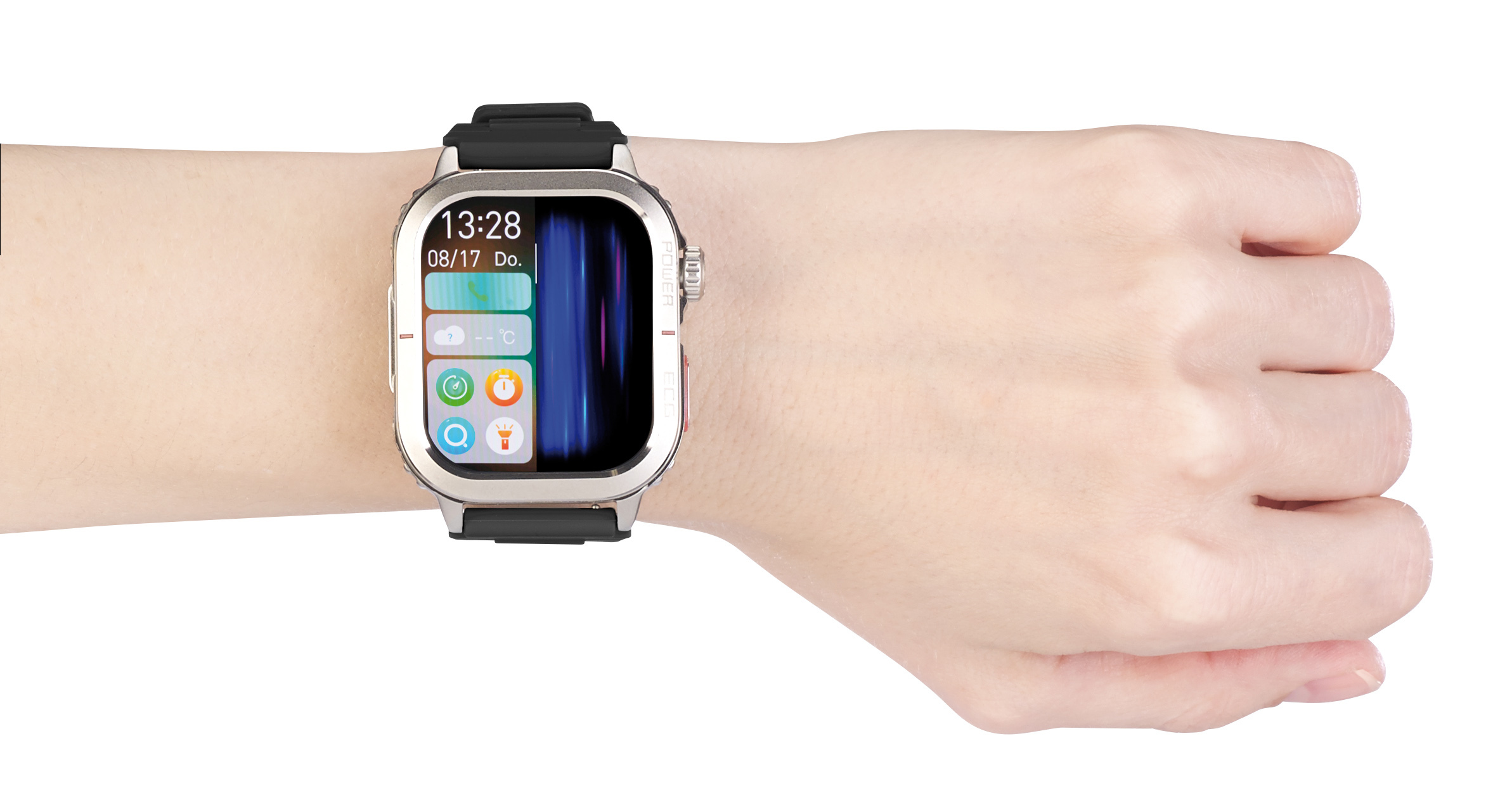 Der smarte Begleiter am Handgelenk: Die neue Fitness-Smartwatch von newgen medicals hält einen immer auf dem Laufenden. Egal, ob man gerade Sport macht oder auf Reisen ist. Nützliche Extras wie Timer und Wecker helfen beim täglichen Zeitmanagement.