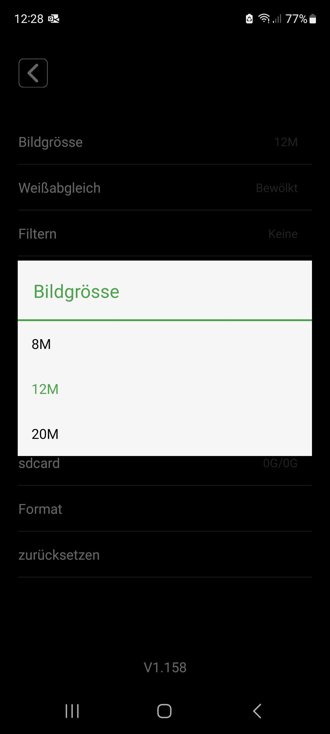 • Hochauflösende Fotos: 48, 30, 24, 20 (interpoliert), 12, 8, 5 und 3 MP