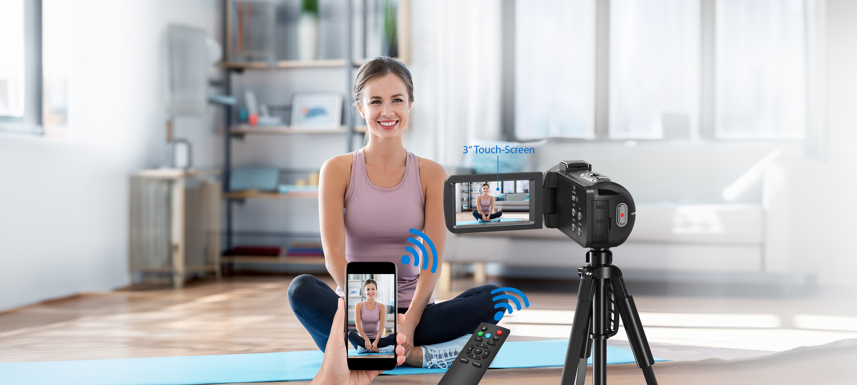 • WiFi-kompatibel: WLAN-Standards IEEE 802.11b/g/n (2,4 GHz) für die Verbindung von Smartphone und Tablet-PC mit Camcorder