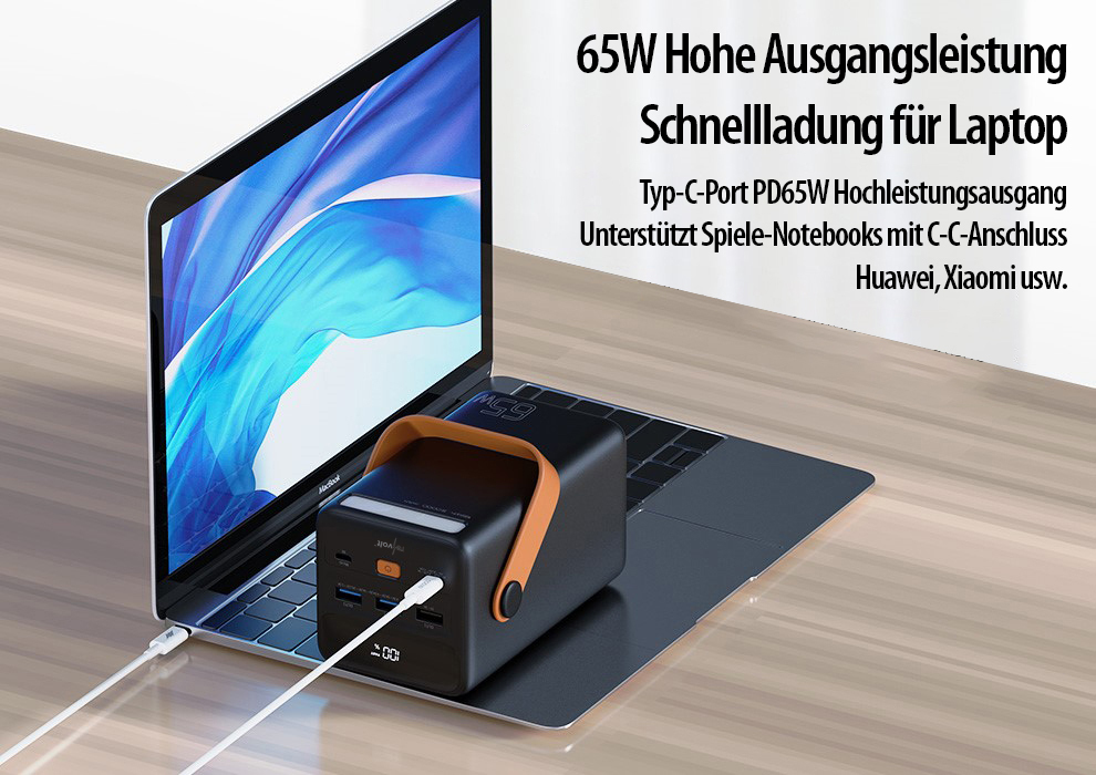 USB Typ C mit Power Delivery bis zu 65 Watt: Der moderne USB-C-Anschluss unterstützt neben der Standardspannung von 5 Volt auch Spannungen bis zu 20 Volt. So sind die Akkus kompatibler Geräte im Handumdrehen aufgeladen - egal ob Smartphone, Tablet-PC, MacBook, Notebook oder andere kompatible Geräte!