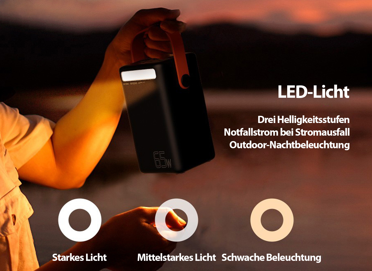 Integrierte LED-Taschenlampe: Mit hellen bis zu 275 Lumen findet man auch im Dunkeln jederzeit, wonach man sucht. Damit ist der Energiespender der ideale Begleiter bei allen Outdoor-Aktivitäten!