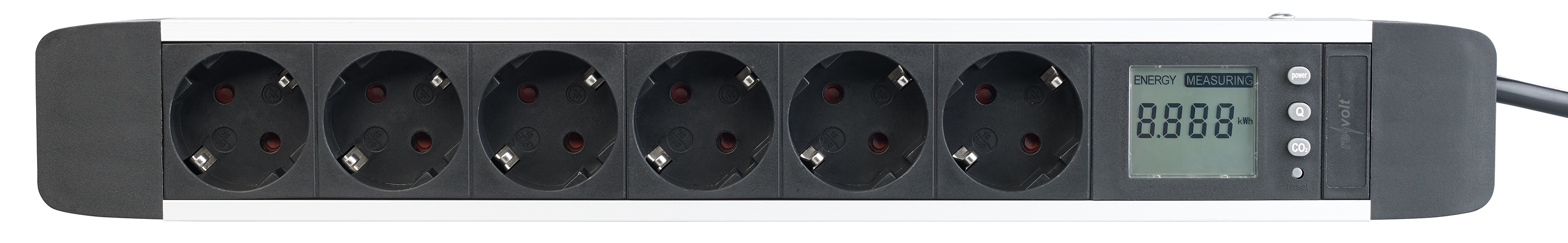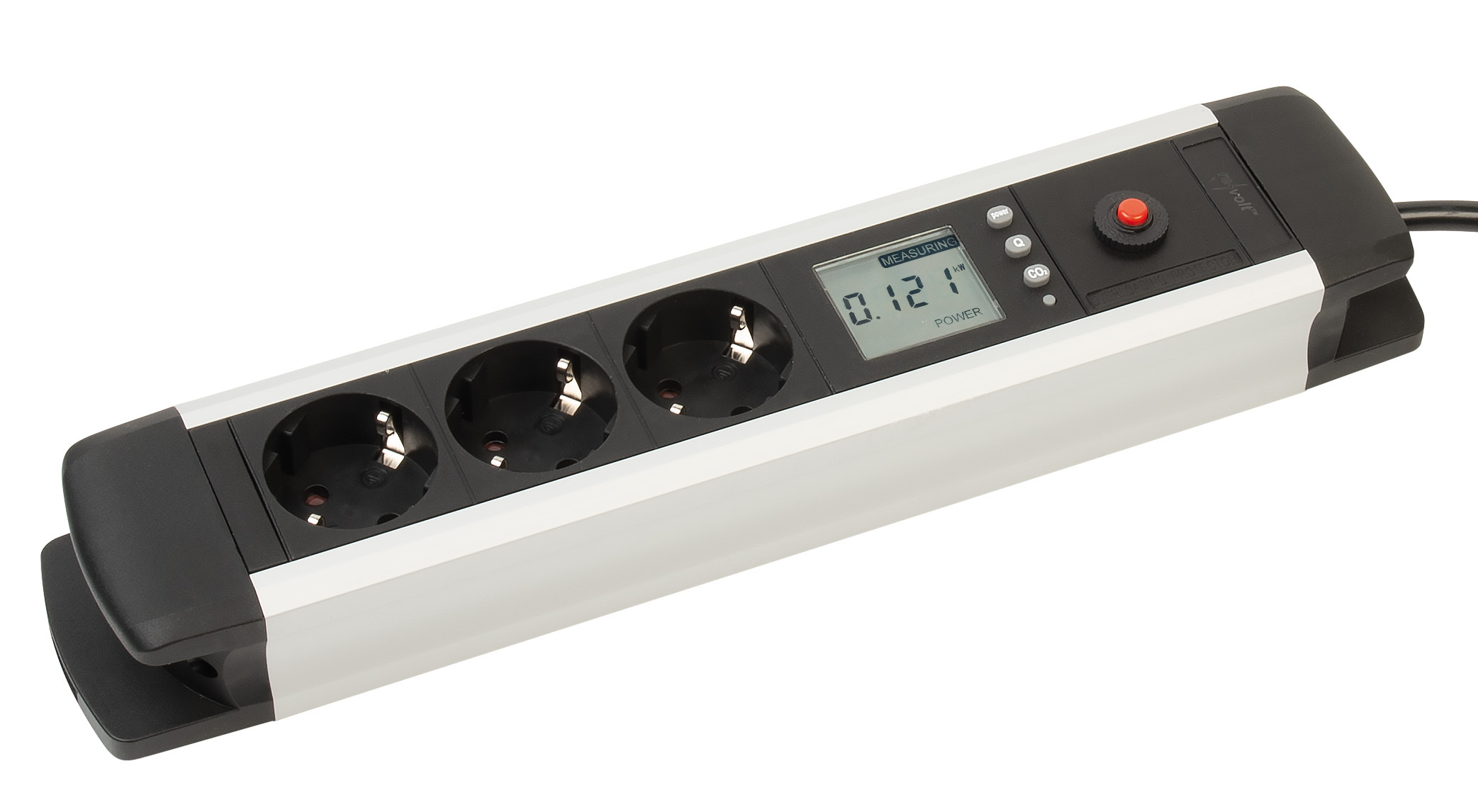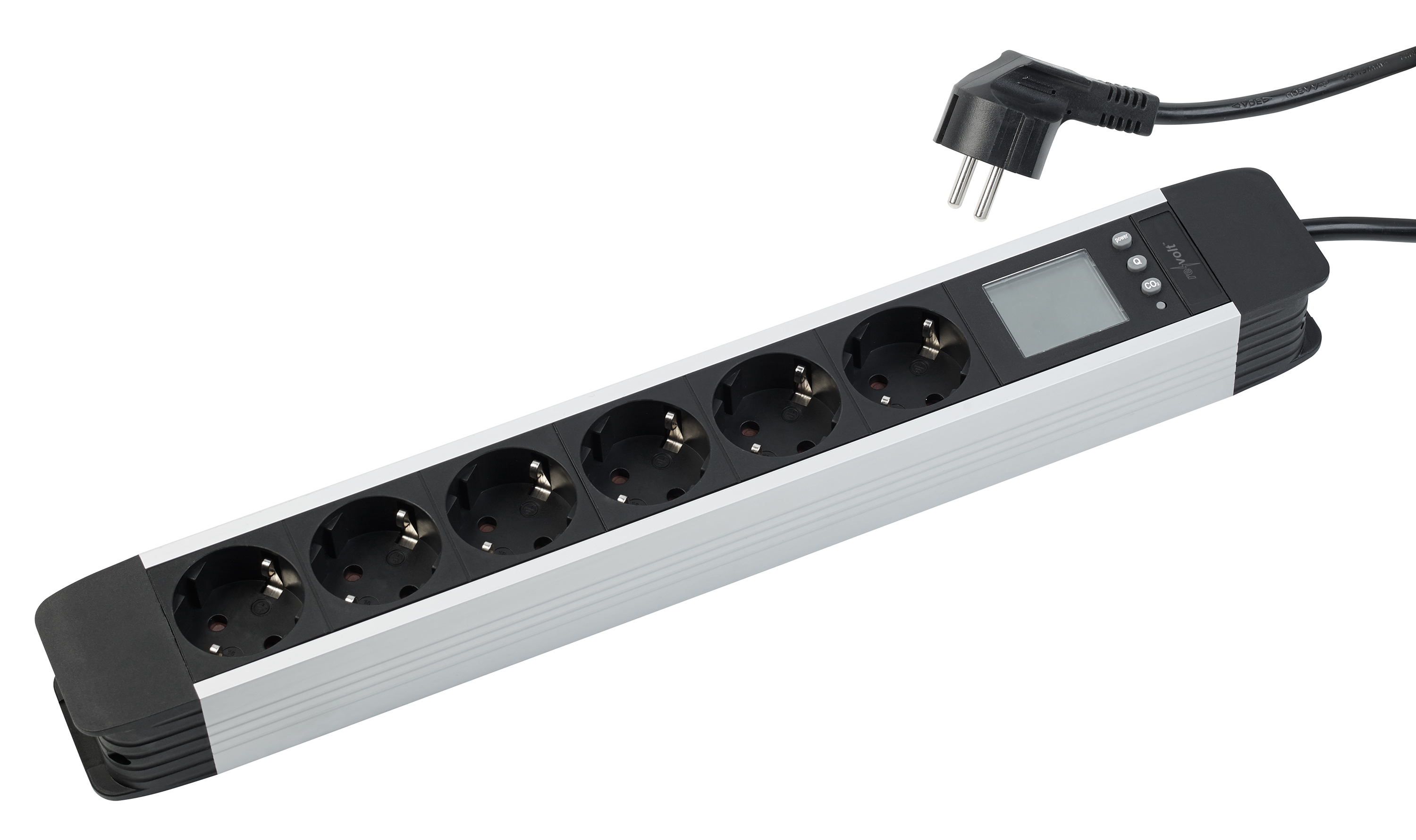 revolt 6-fach-Alu-Steckdosenleiste mit Stromverbrauchszähler und LCD-Display