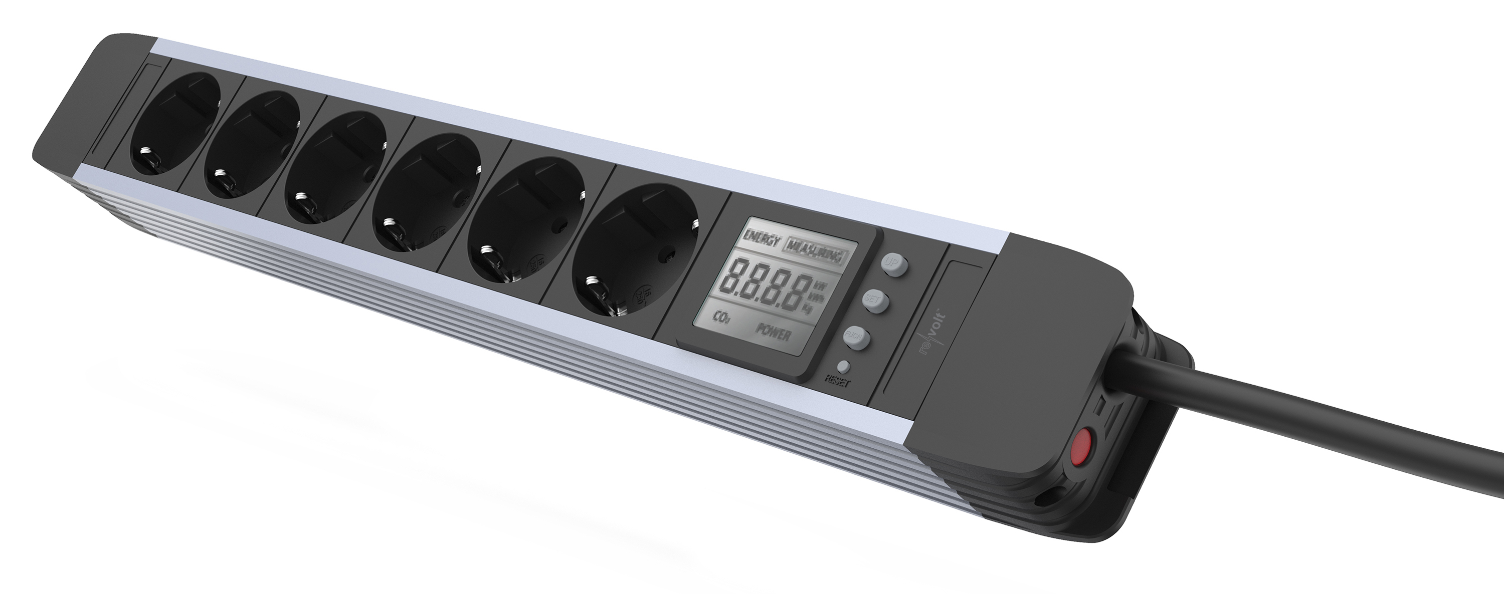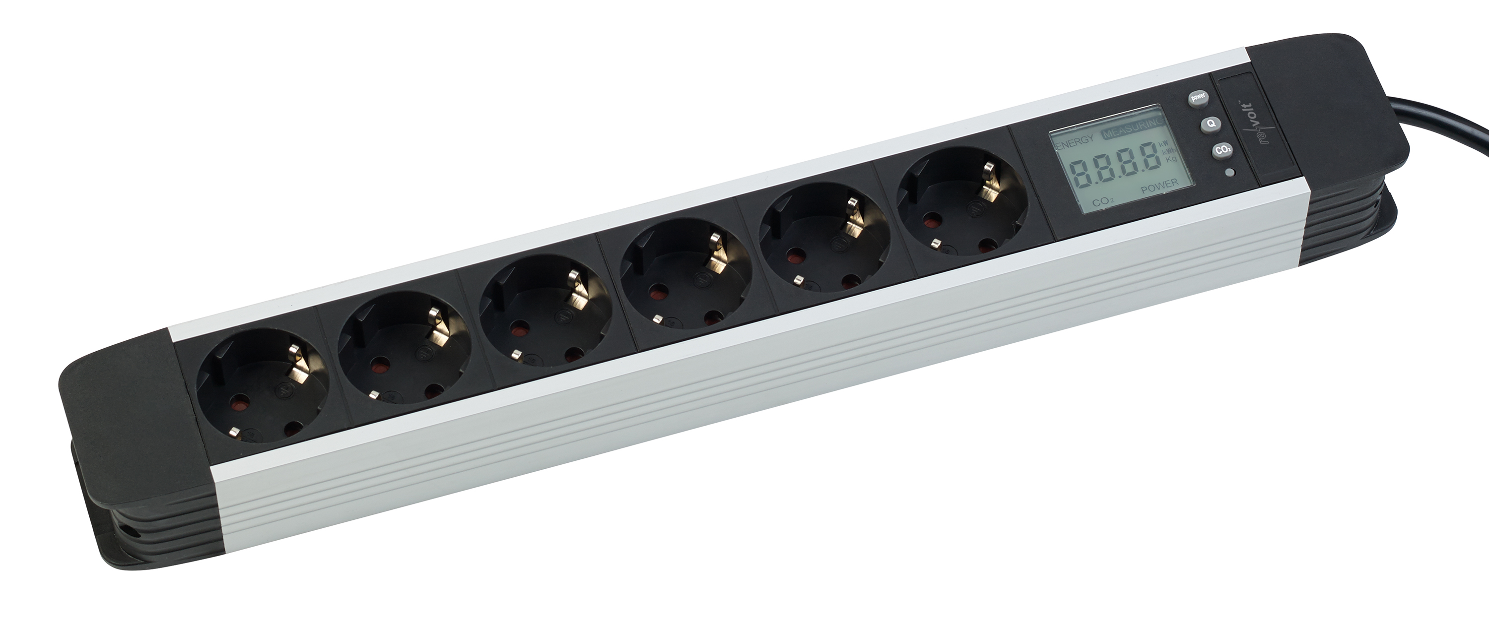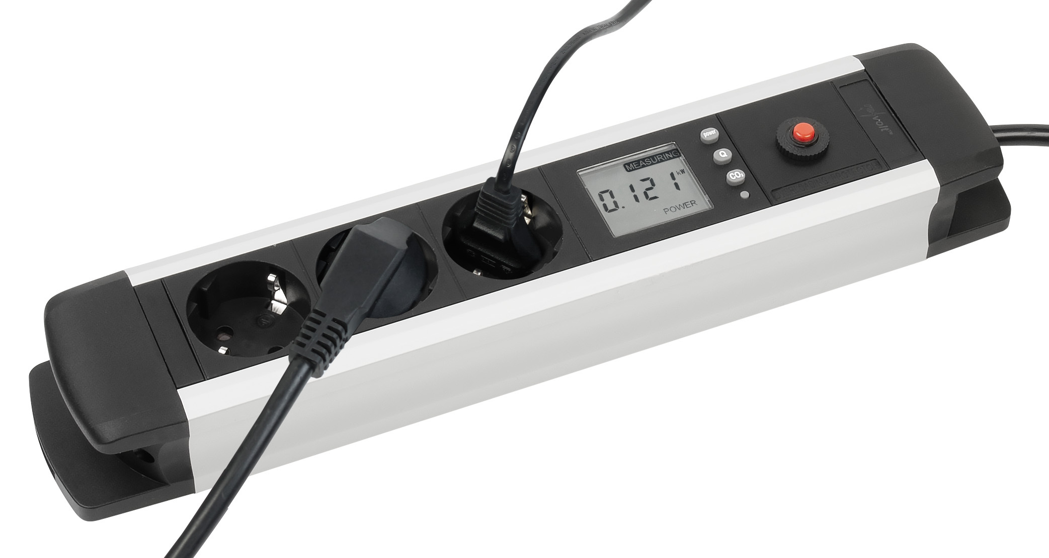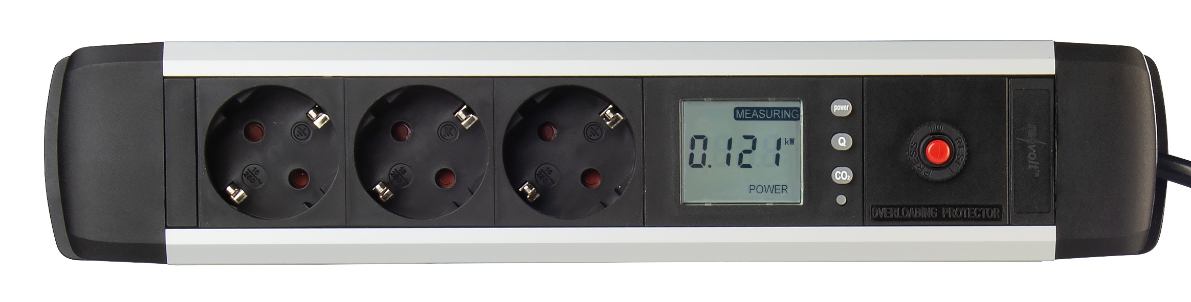 revolt 6-fach-Alu-Steckdosenleiste mit Stromverbrauchszähler und LCD-Display