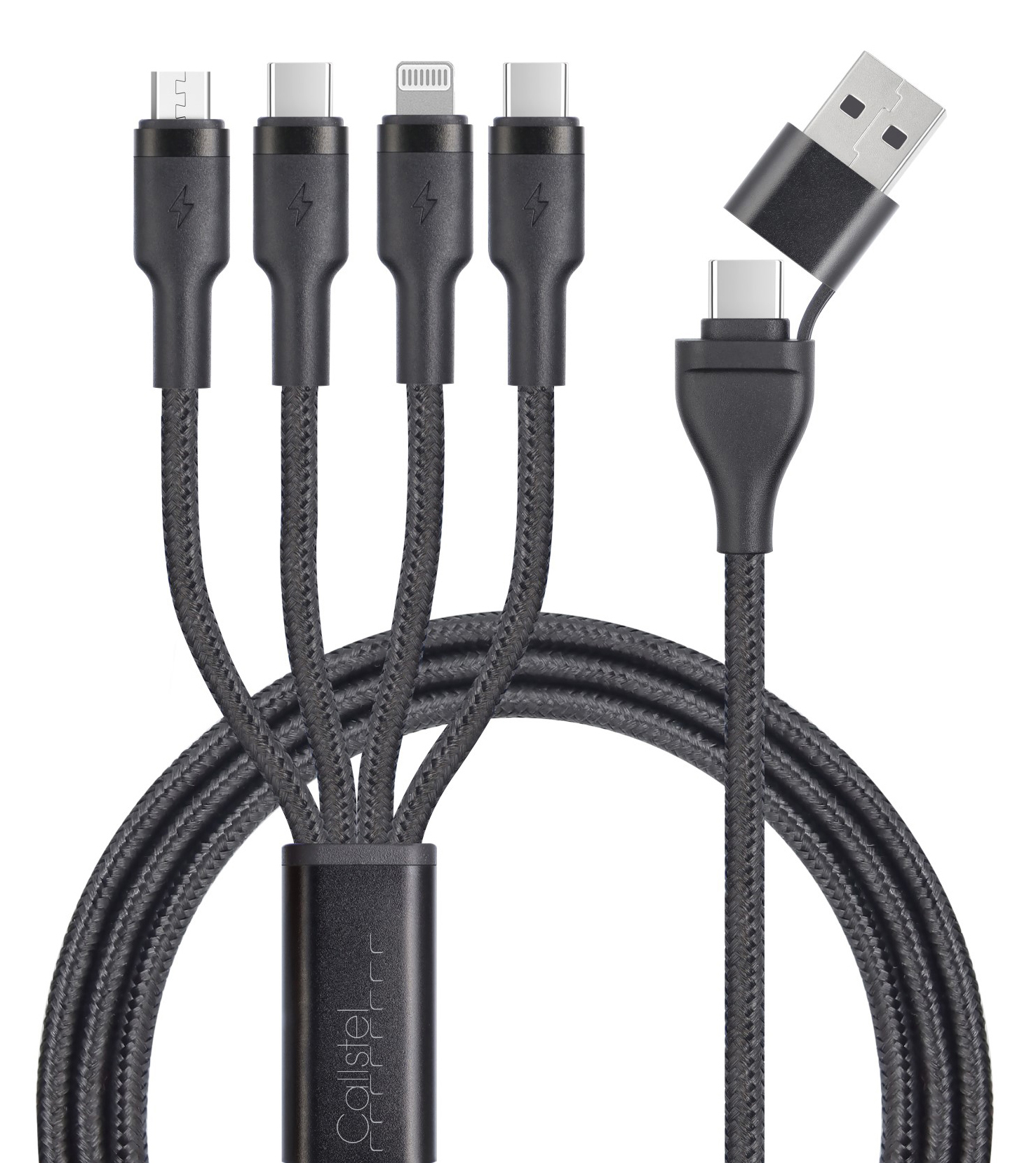Callstel 8in1-Lade-/Datenkabel USB-C/A zu USB-C/Micro-USB/Lightning 60 Watt, 120 cm
