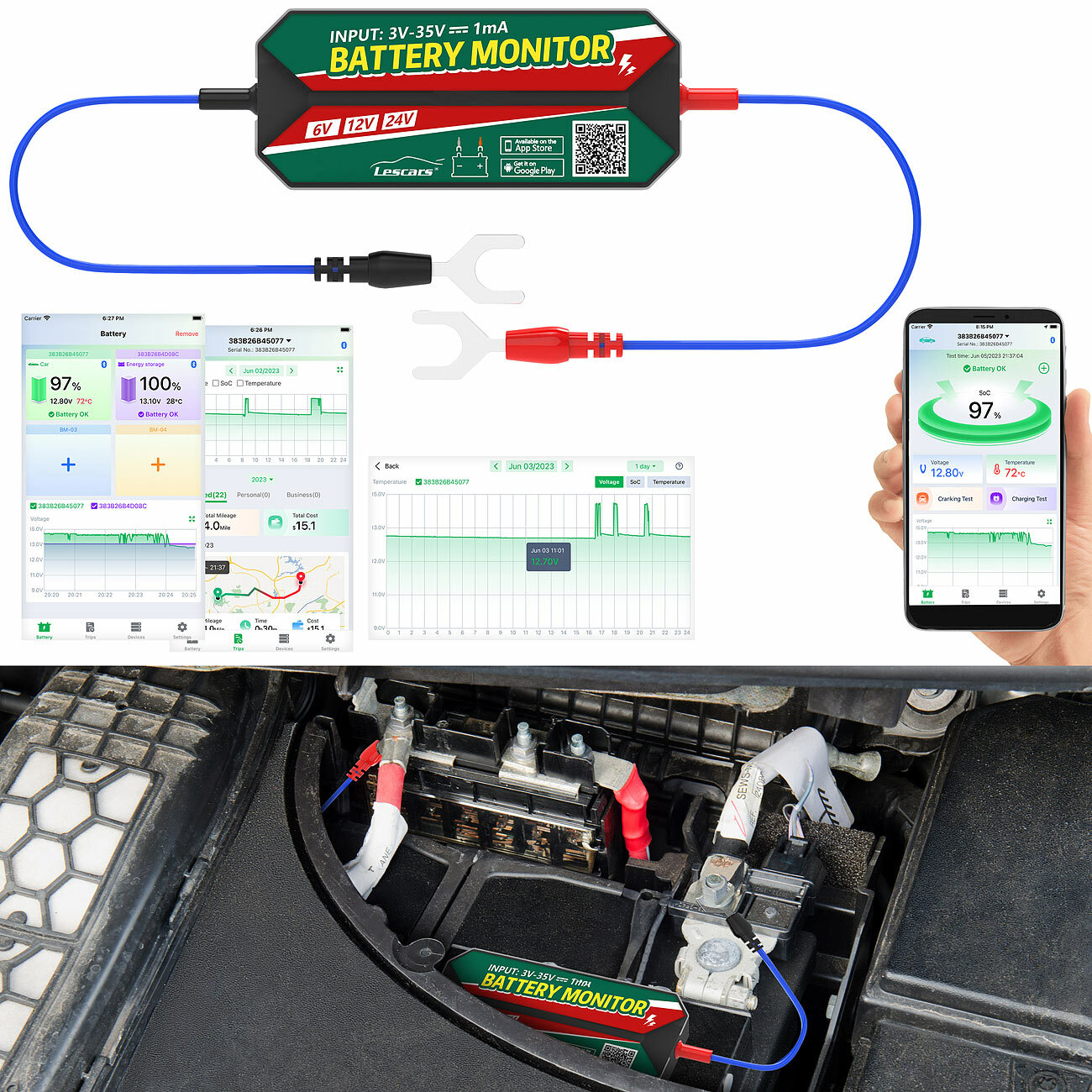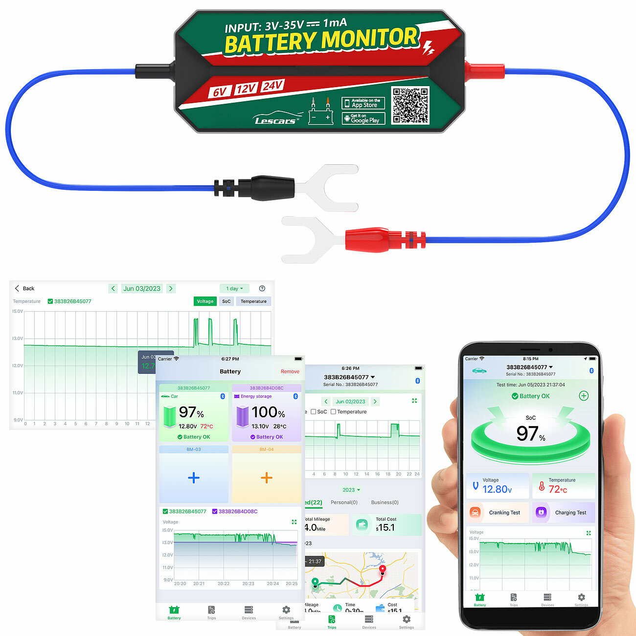 (lifepr) (Buggingen, 21.02.2024) Ohne eine funktionierende Batterie können Autos, Wohnmobile, Motorräder, LKWs und Boote nicht fahren - deshalb ist es wichtig, den Ladezustand im Auge zu behalten. Mit dem Fahrzeugbatteriewächter von Lescars ist das ganz einfach: Die kostenlose App einfach mit dem Mobilgerät koppeln und schon sieht man Spannung, Temperatur, Batteriekapazität und vieles mehr in Echtzeit. Mit der App kann das Fahrzeug auch geortet und die gefahrene Strecke aufgezeichnet werden!