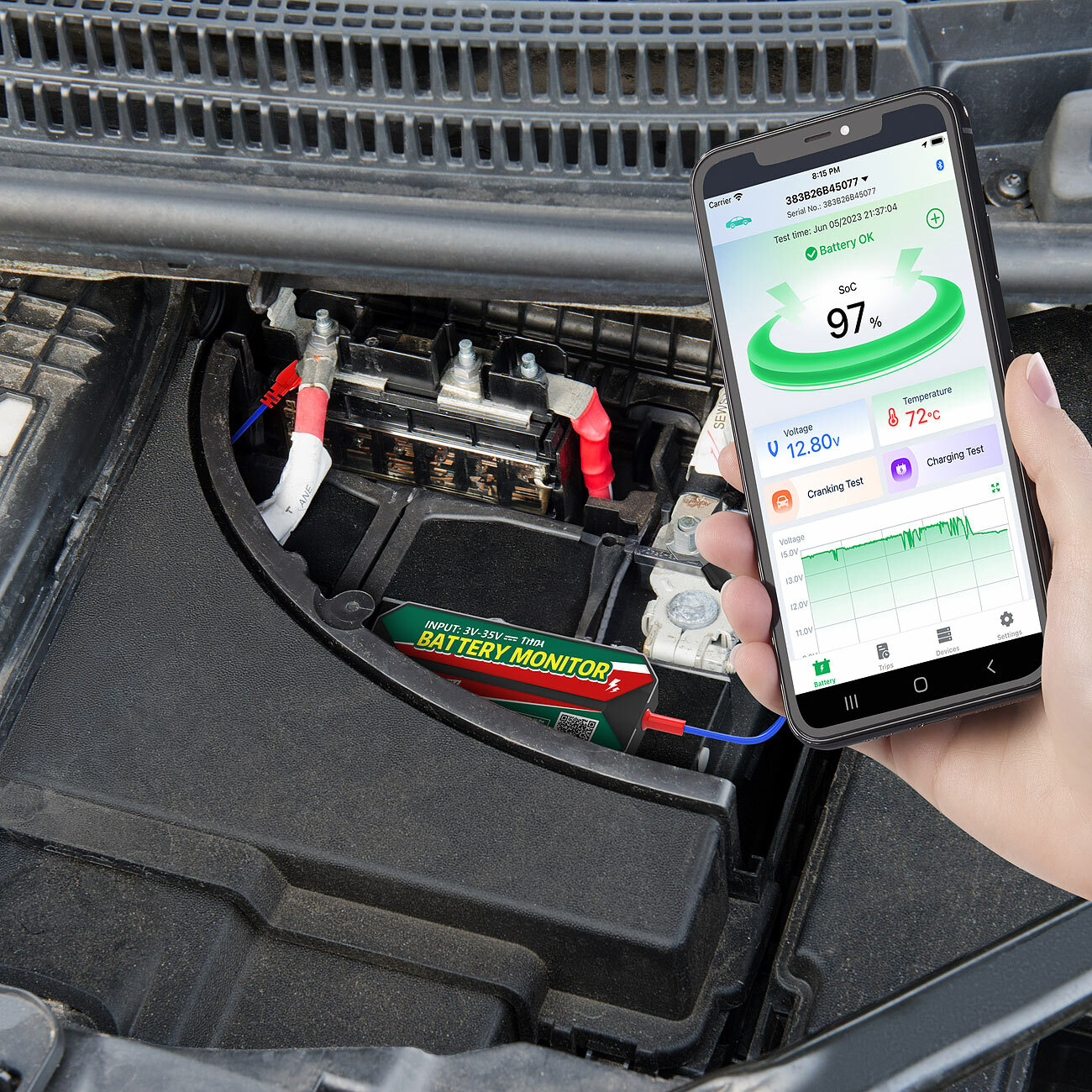Warnsignal bei zu niedriger Spannung: Der Wächter erfasst alle Spannungswerte beim Start und beim Laden während der Fahrt. Fällt die Spannung einmal zu stark ab, warnt er sofort!