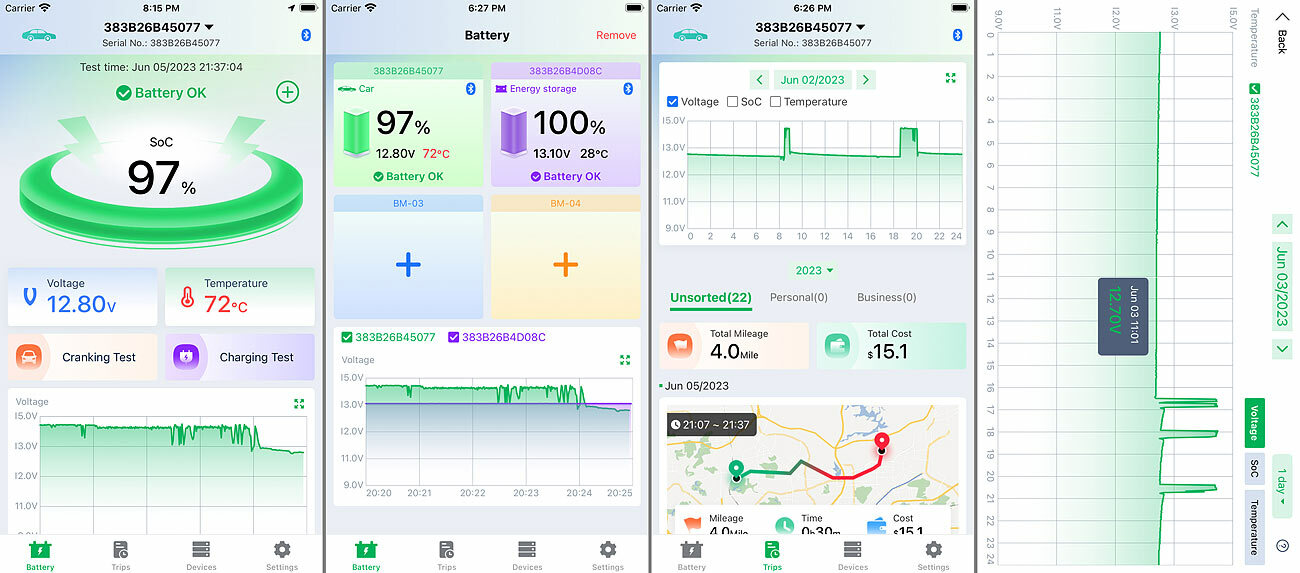 Einfache Langzeitauswertung: Die kostenlose App stellt die gesammelten Batteriedaten grafisch dar. So erkennt man frühzeitig, wann Handlungsbedarf besteht und die Batterie ausgetauscht werden sollte.