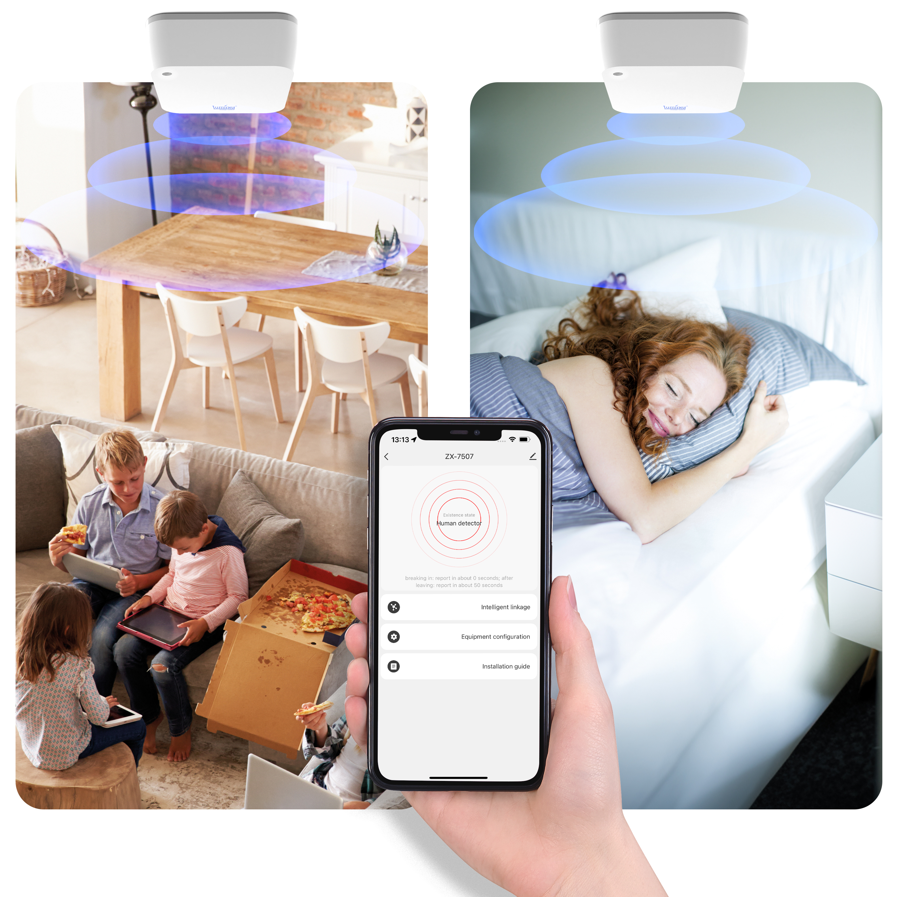 Die Einsatzmöglichkeiten sind vielfältig: Zum Beispiel lässt man das Licht in der Toilette solange brennen, wie sich dort jemand aufhält. Oder man lässt die Jalousien geschlossen, wenn jemand schläft. Der Sensor erkennt sogar, ob jemand im Raum sitzt oder schläft. Beliebige Smart-Home-Szenen bei Anwesenheit können aktiviert werden.