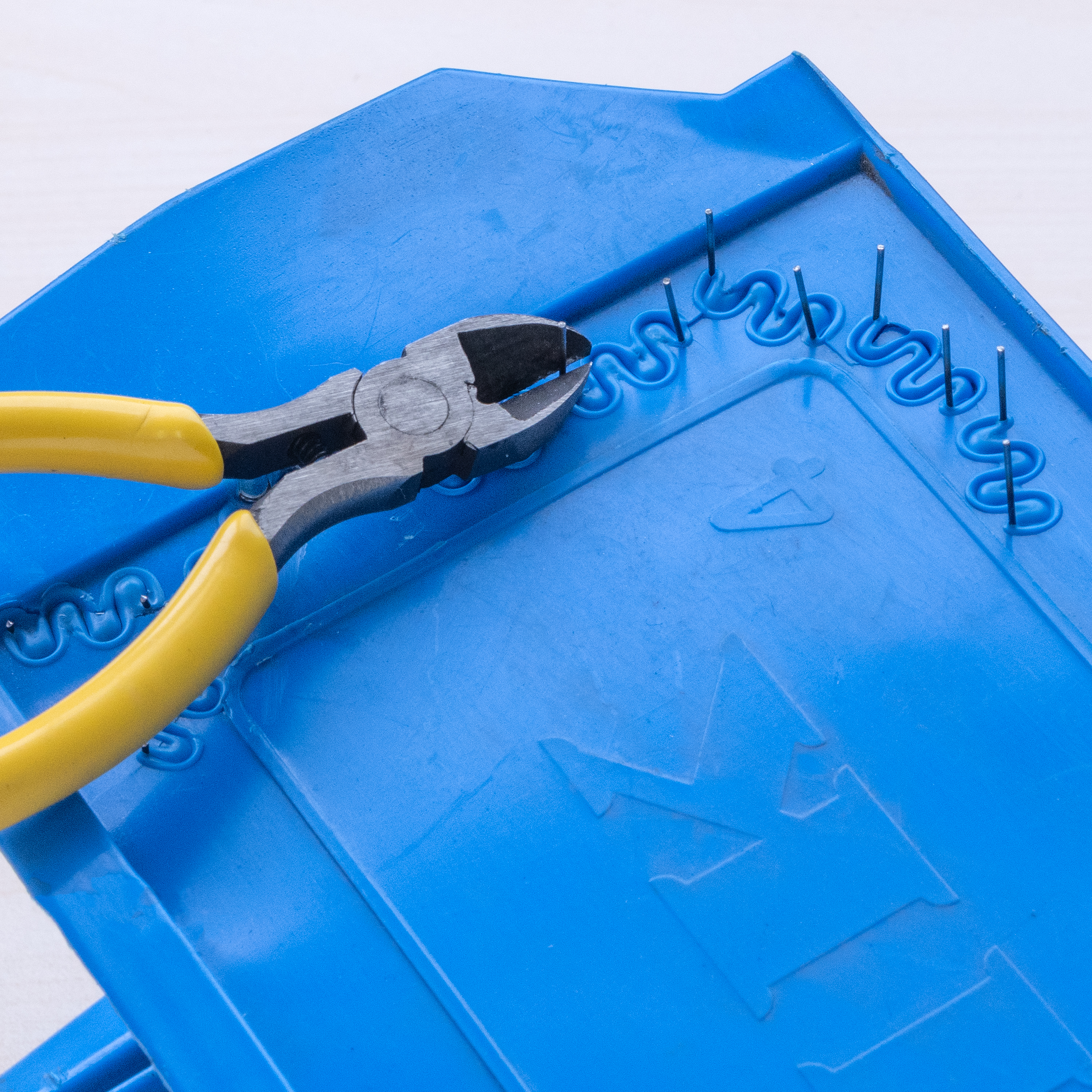 Einfach in der Anwendung: Je nach Form und Größe des Kunststoffrisses wird der passende Schweißnagel in das Gerät gesteckt. Dann setzt man das Kunststoff-Schweißgerät-Komplett-Set von AGT an den zu verschweißenden Riss und drückt den Heizknopf. Der Schweißnagel dringt nun in den Kunststoff ein und verbindet die gebrochenen Teile. Fertig!